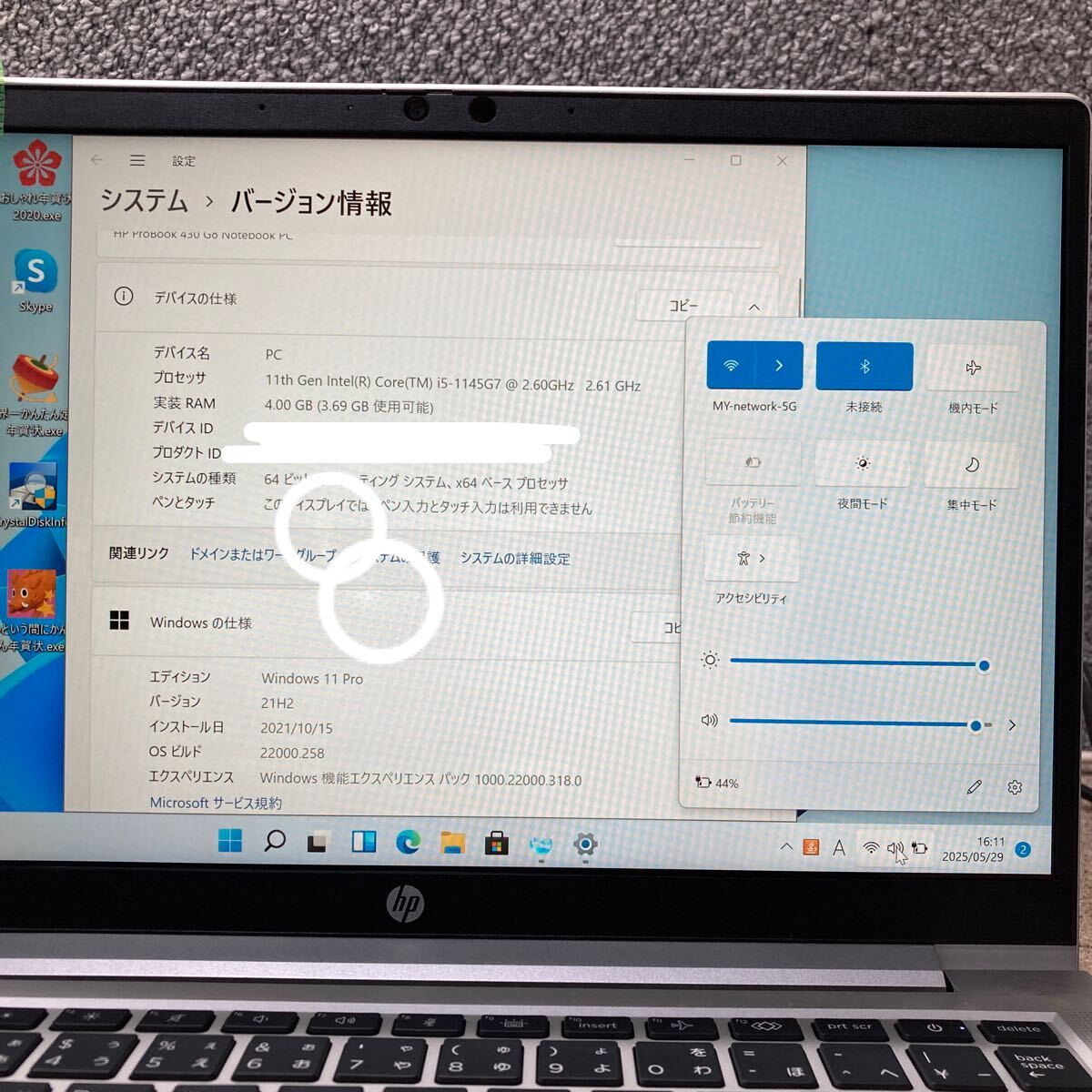 Product name: MY5T-89 激安 OS Windows11Pro試作 ノートPC HP ProBook 430 G8 Core i5 1145G7 メモリ4GB 高速SSD256GB カメラ Bluetooth 現状品