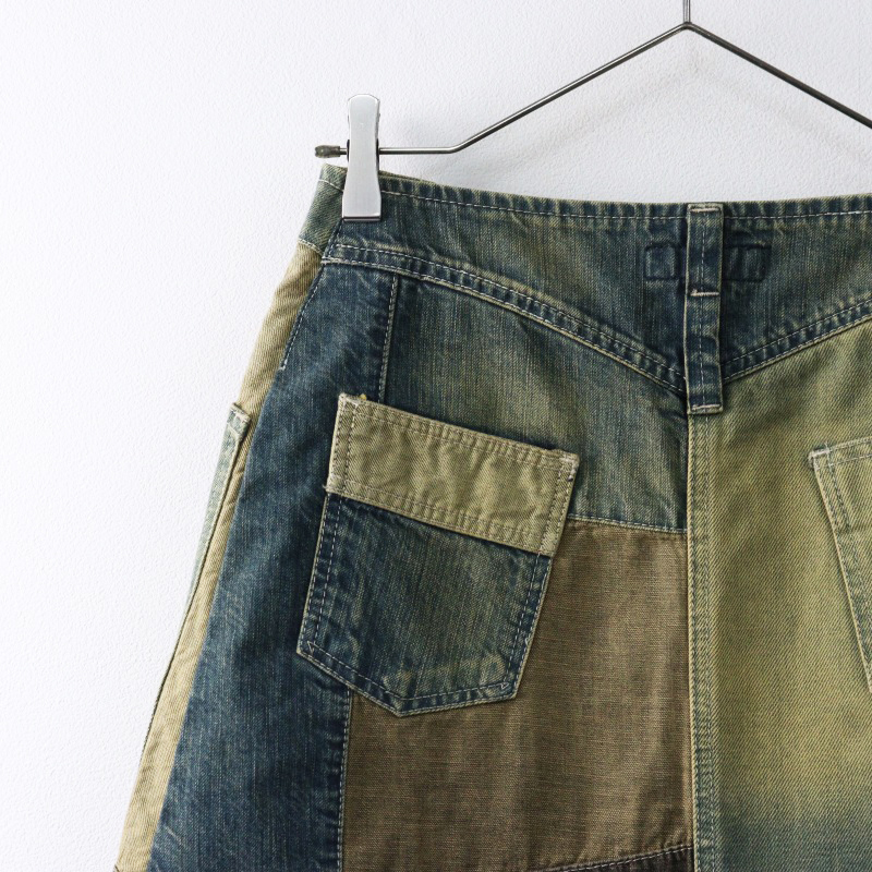 モロッコ製 ケンゾー KENZO ビンテージ 前ボタン パッチワークデニムスカート ミニ丈 38 インディゴ/ボトムス【2400014444766】