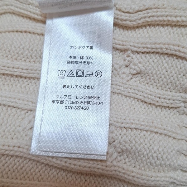 Product name: ラルフローレン RalphLauren 長袖セーター/ニット サイズXS - アイボリー×ゴールド レディース クルーネック 新品同様 トップス