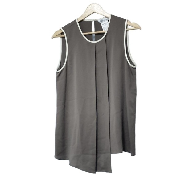 Product name: マックスマーラ Max Mara ノースリーブカットソー サイズIJ542 - グレーベージュ×アイボリー レディース クルーネック/シルク トップス