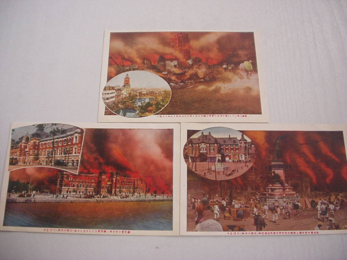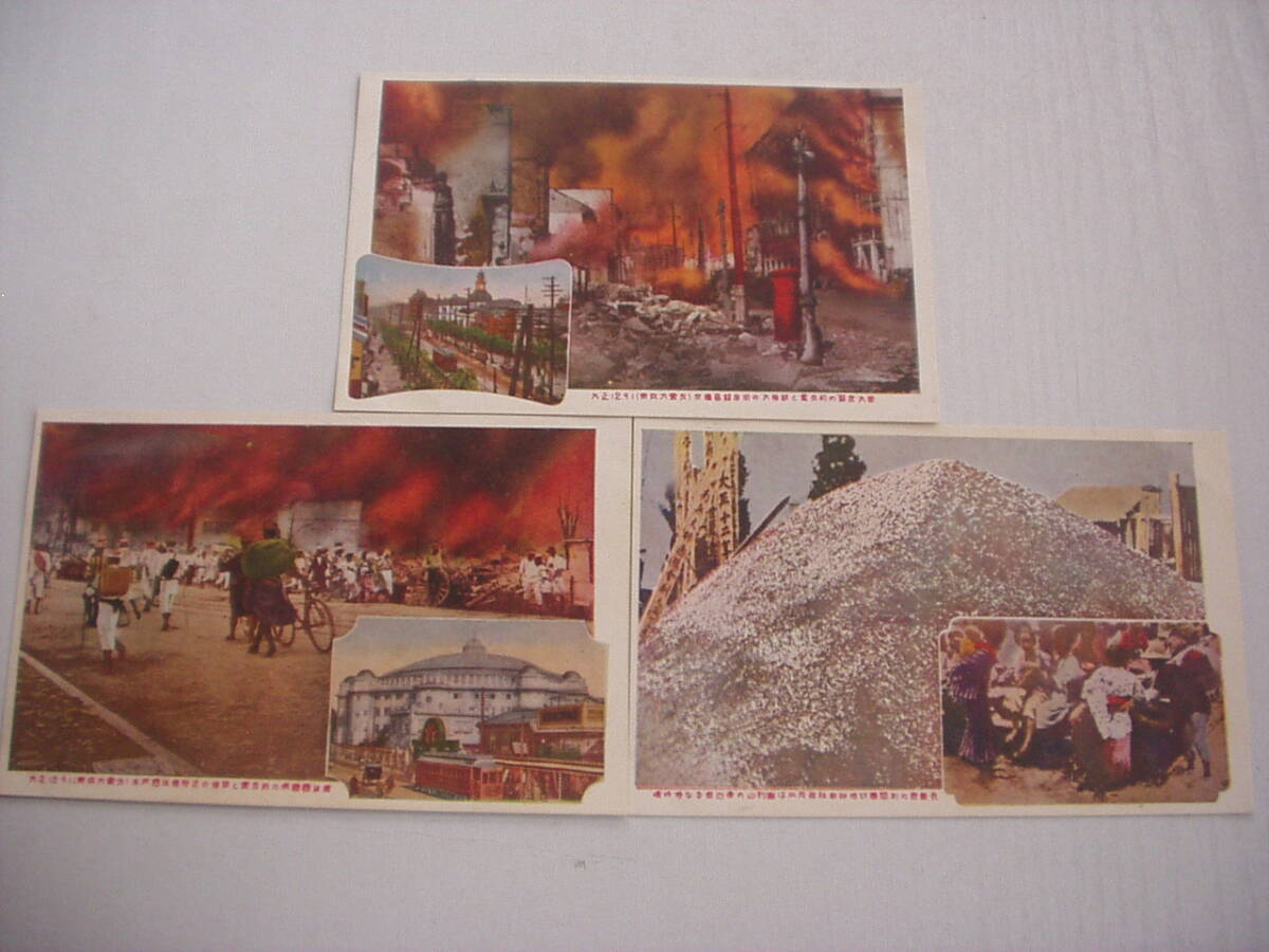 Product name: 絵葉書 関東大震災 8枚 銀座街 国技館付近 白骨の山 浅草仲見世 日本橋付近 十二階 警視庁 万世橋駅 戦前 大正 カラー