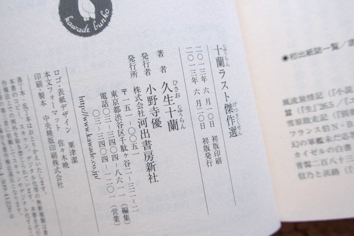 Product name: 十蘭ラスト傑作選 (河出文庫) 久生十蘭 2013年初版