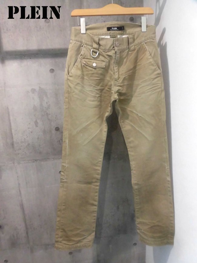 PLEIN プレイン グランジ加工 ブーツカットパンツ 1/ダメージ加工 シューカットパンツ/ベージュ/メンズ/日本製