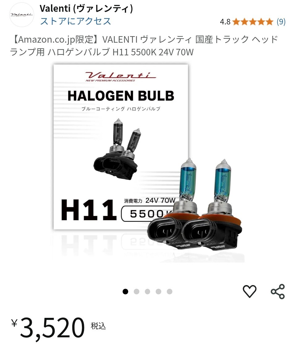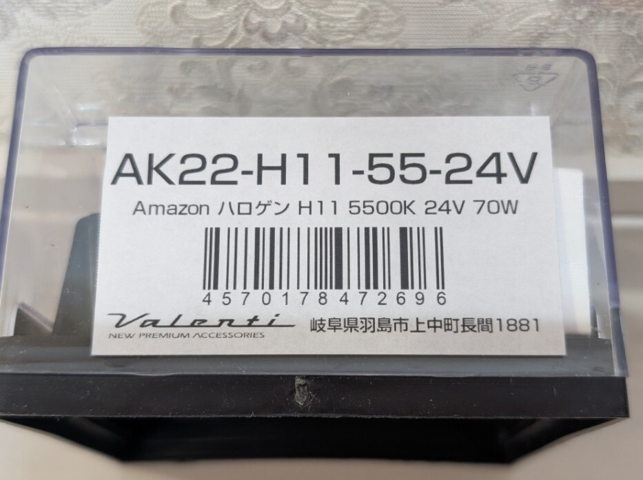 Product name: 新品☆定価3,520円 H11 ホワイト VALENTI ヴァレンティ 24V国産トラック用 ヘッドランプ用 ハロゲンバルブ 5500K 70W 保安基準適合