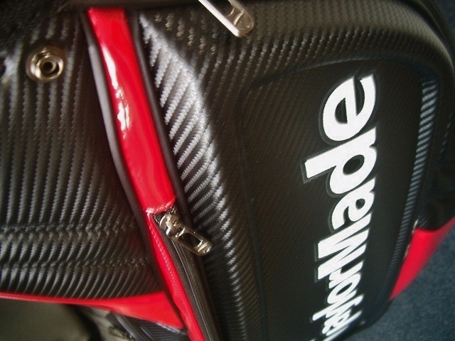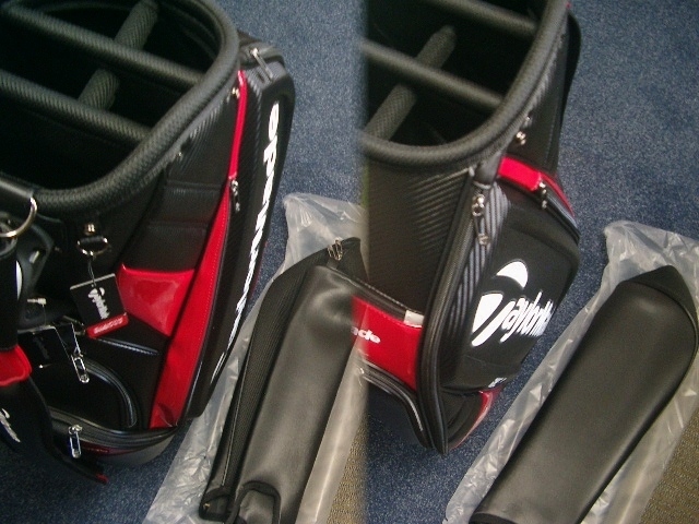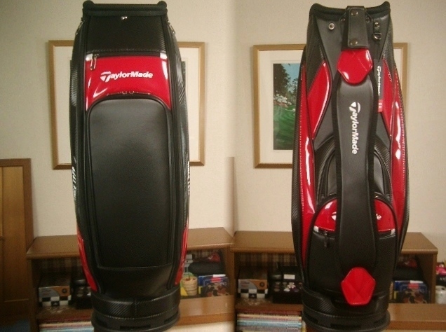 未使用 テーラーメイド アスリートタイプ オーステック 成型デザイン 合皮×エナメル素材 黒赤白 ゴルフバッグ
