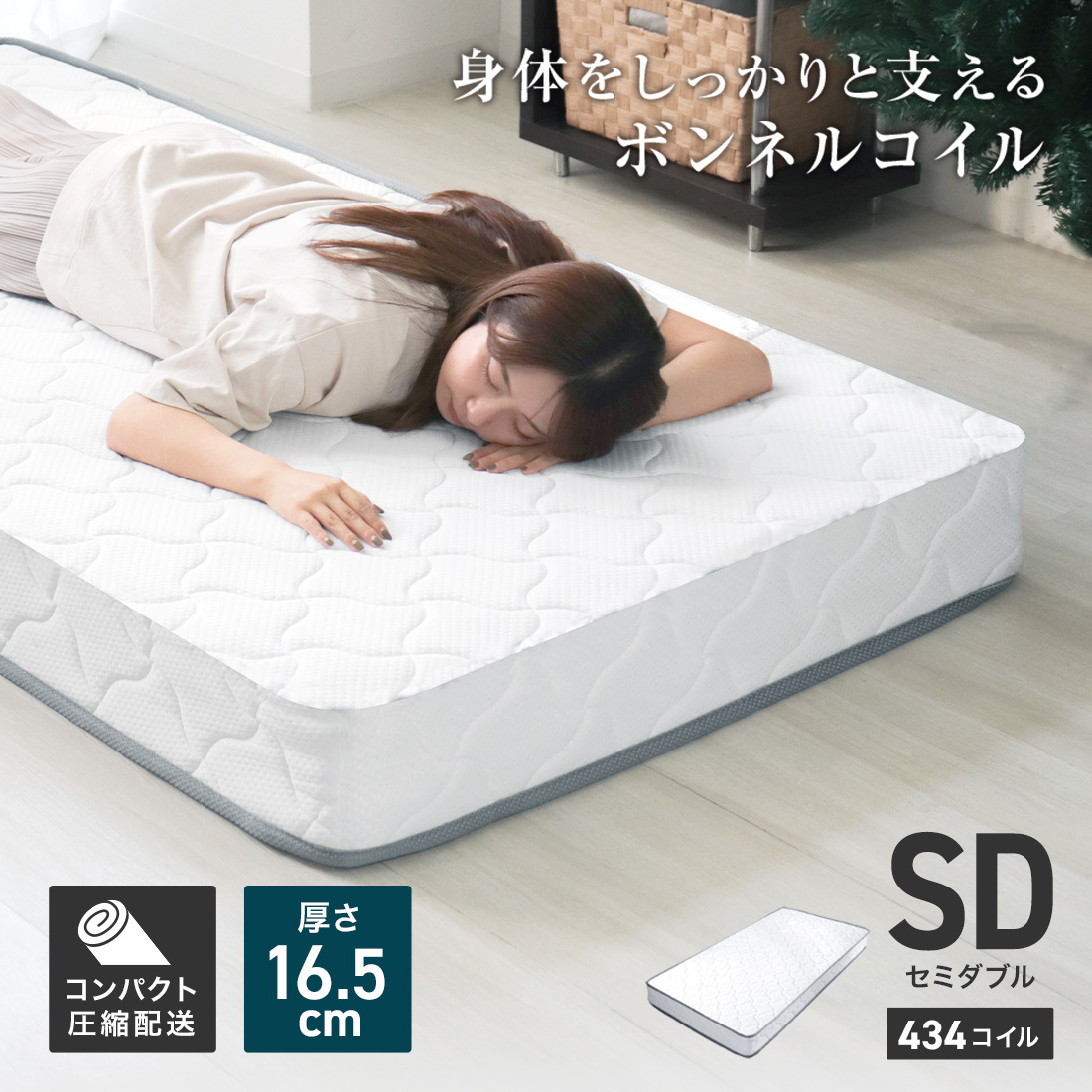 マットレス セミダブル 厚さ16.5cm 高密度ボンネルコイル コイルマットレス ベッド マットレス 腰痛 肩こり 安眠 敷き布団 寝具 新品未使用