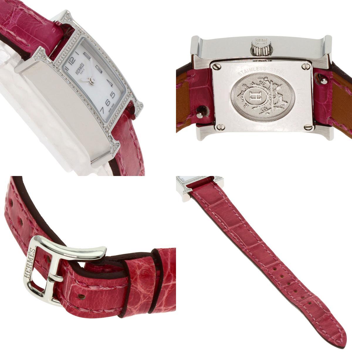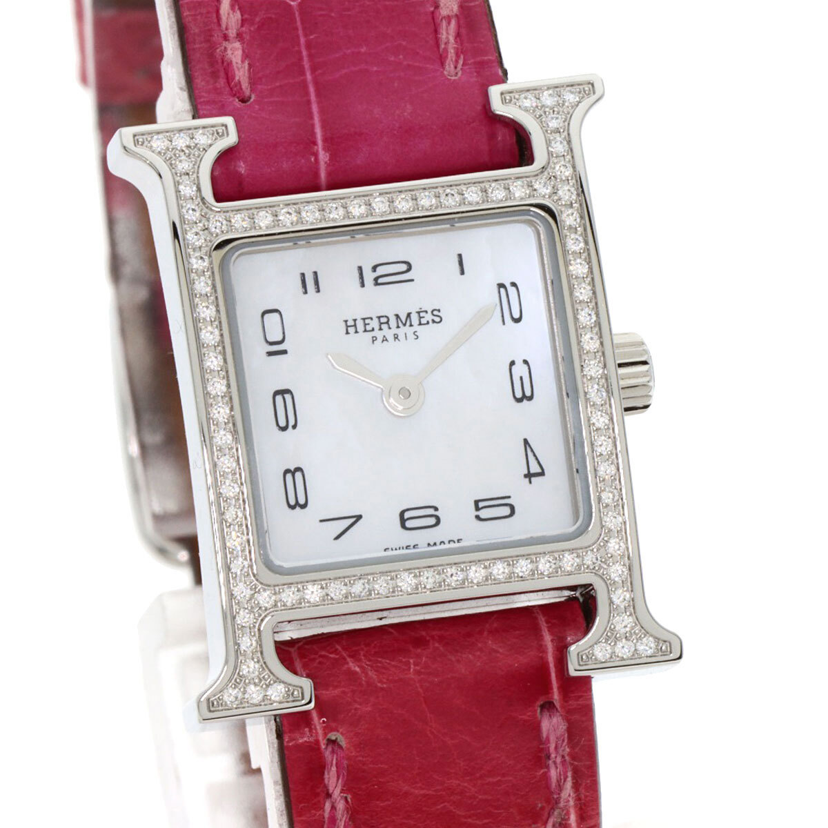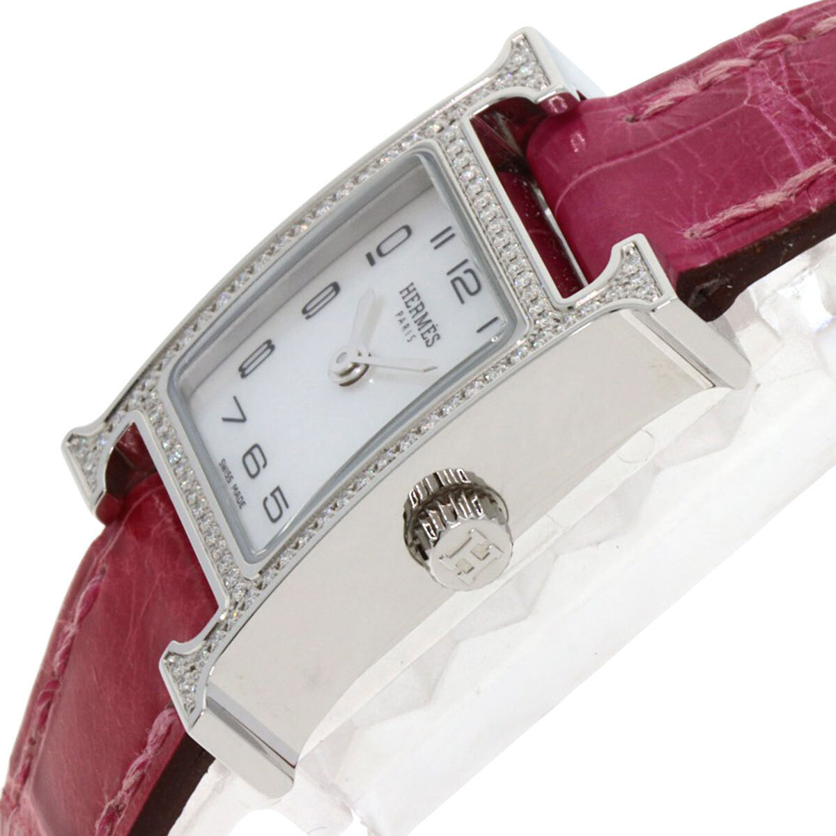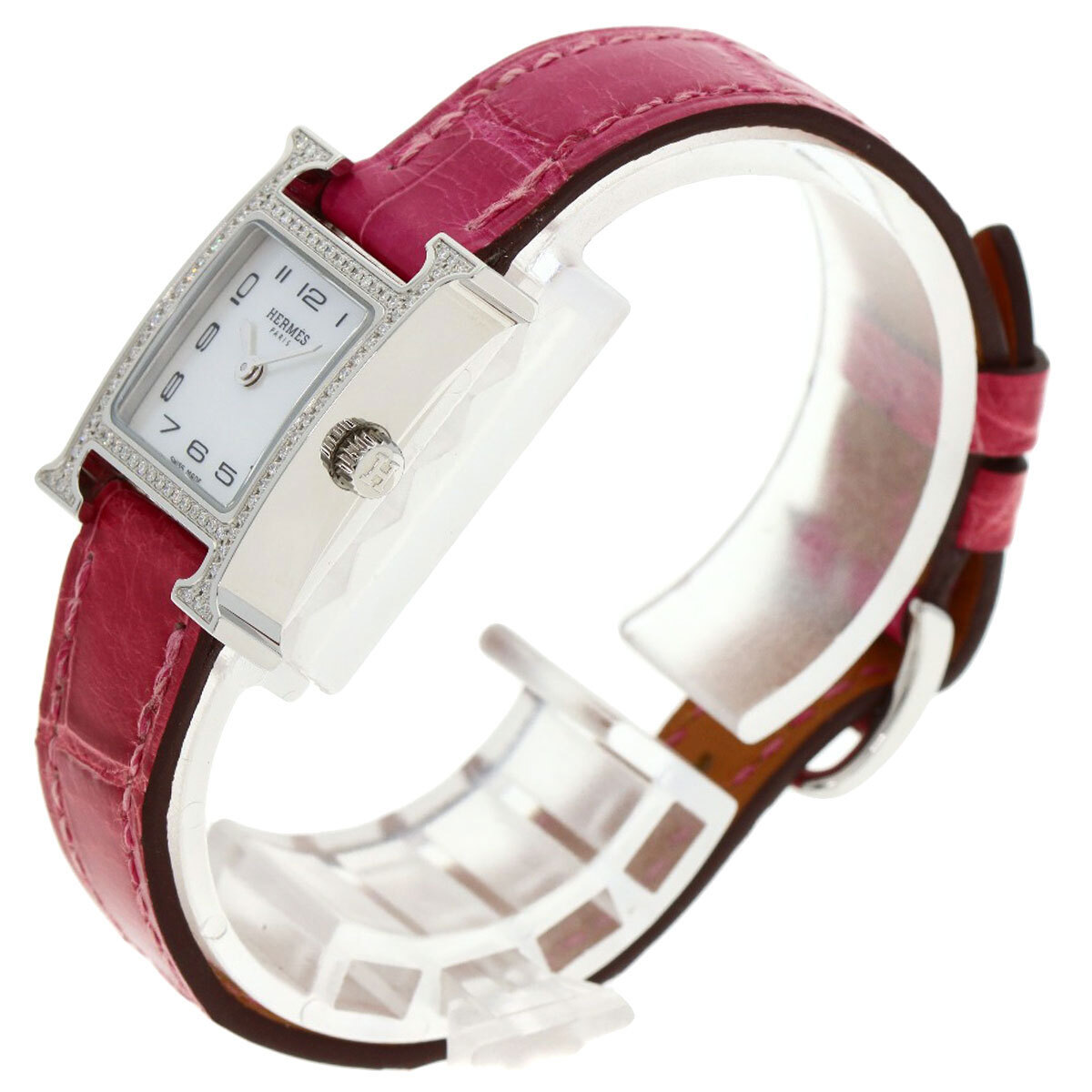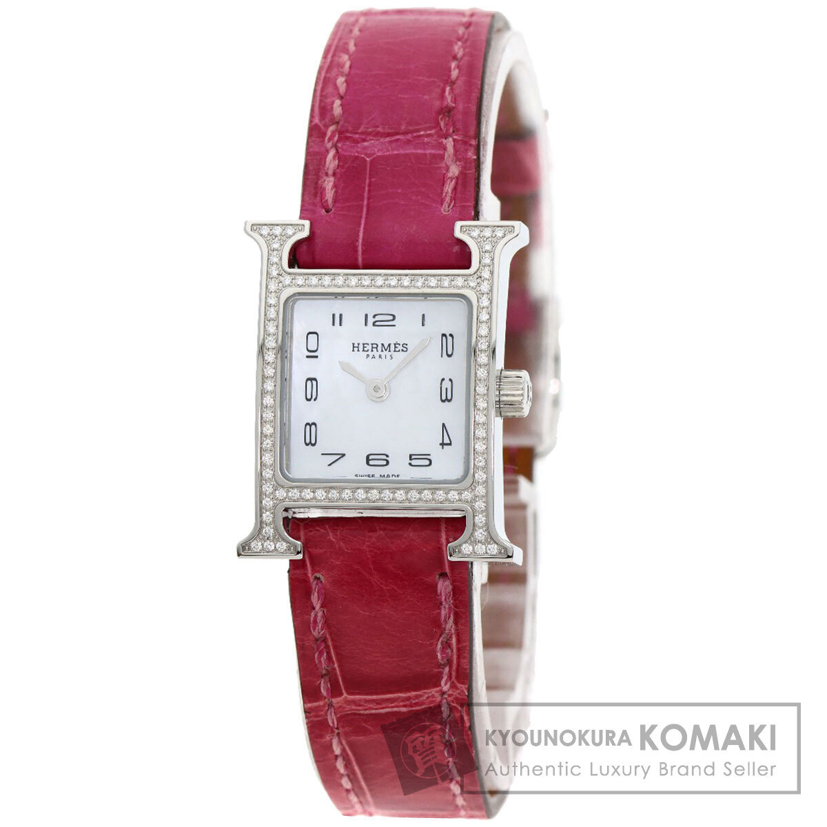 Product name: HERMES エルメス HH1.131 Hウォッチ ミニ ダイヤモンドベゼル 腕時計 ステンレススチール アリゲーター レディース 中古