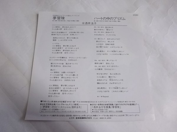 【EP】酒井法子/夢冒険/ハートの中のプリズム アニメ三銃士 良好 SV-9297