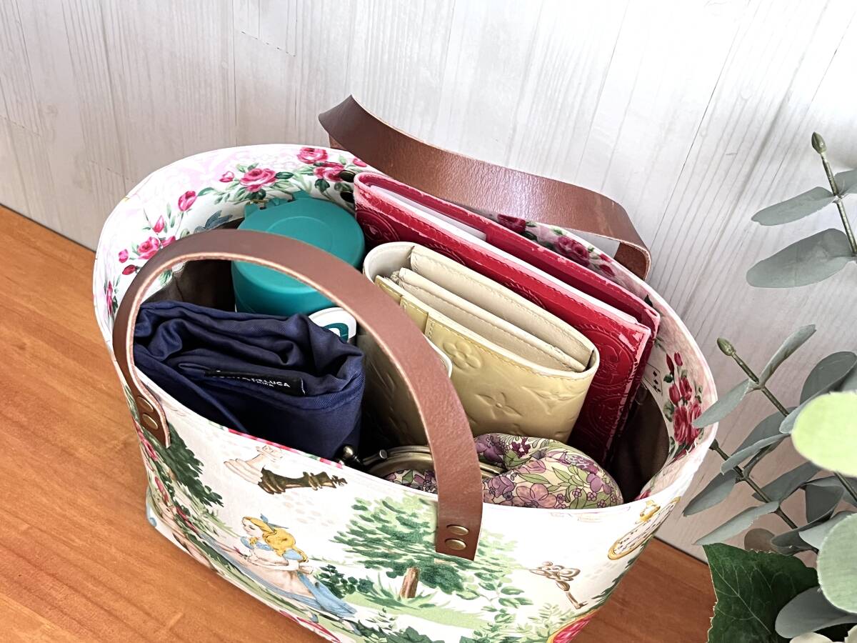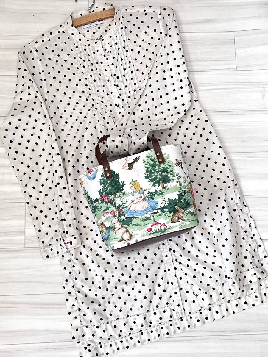 Product name: ハンドメイド+迷い込んだ不思議の国のアリス+②+うさぎ+きのこ +ピンク+ バラ+ Mサイズ+ころりん+トートバッグ +本革