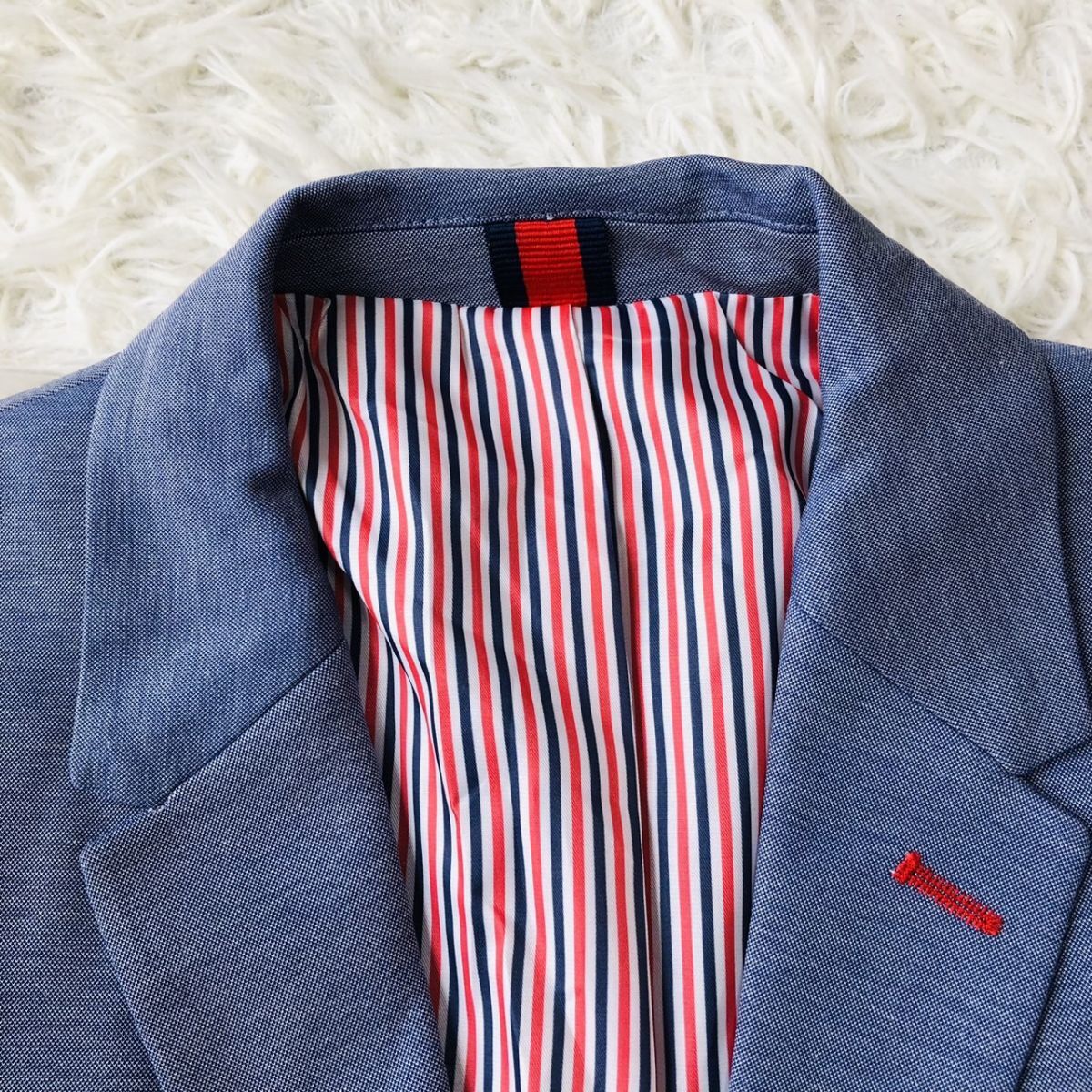 タグ付きの未使用品、ZARA MANのブルーテーラードジャケットです。ストレッチが効いており、快適な着心地。サイドベンツ仕様で動きやすく、ZARA MANらしいモダンで洗練されたデザインが魅力。カジュアルからきれいめスタイルまで幅広く活躍する一着です。