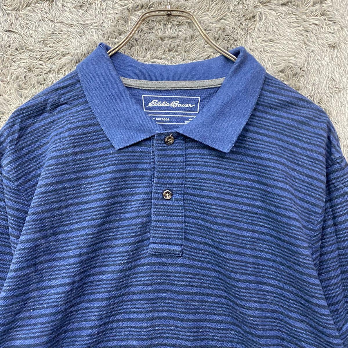Eddie Bauer エディーバウアー 半袖ポロシャツ 半袖シャツ ボーダー 鹿の子 サイズM ブルー 青 メンズ トップス 最落なし (E2)