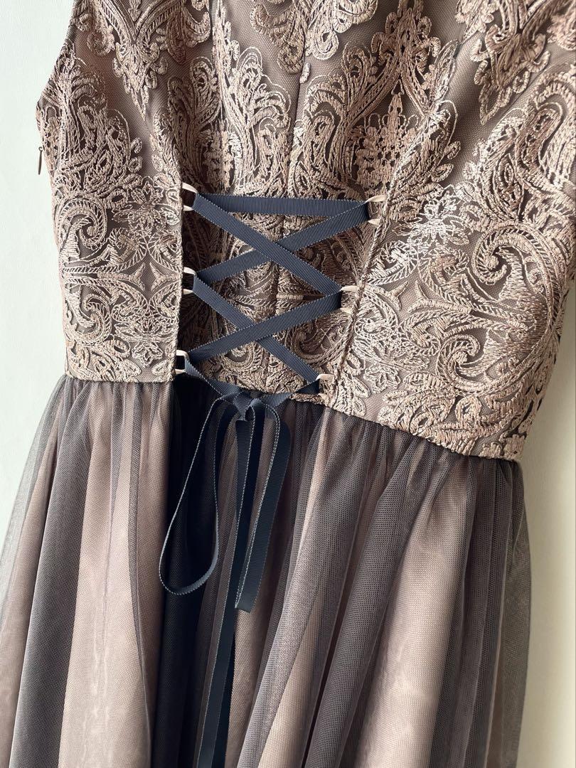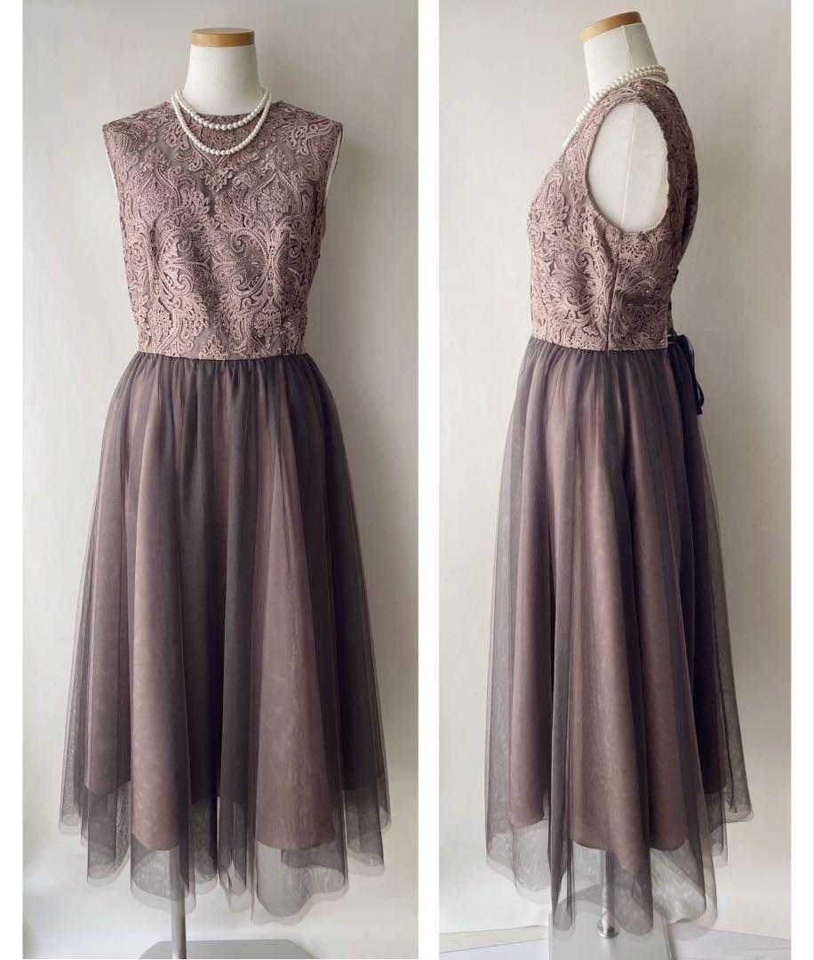 Product name: 美品 エメ AIMER 刺繍レース パーティドレス レディース 膝下丈 サイズ38 サイズM 茶 結婚式 二次会 ブラウン ブロンズ 定価3.8万