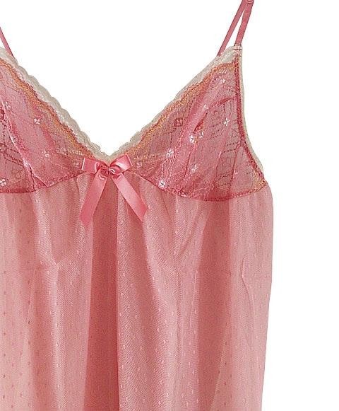 SI4915-22◇ 新品 下着 インナー スリップ キャミソール 胸元レース 小花柄 ドット柄 裾2重レース LL-75サイズ コーラルピンク 送料350円
