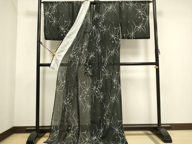 Product name: 平和屋着物*夏物 小紋 紗 舞桜文 黒地 やまと誂製 洗える着物 DAAU3797du