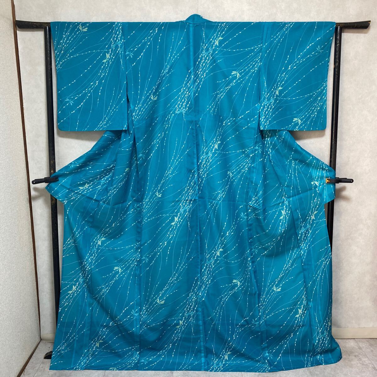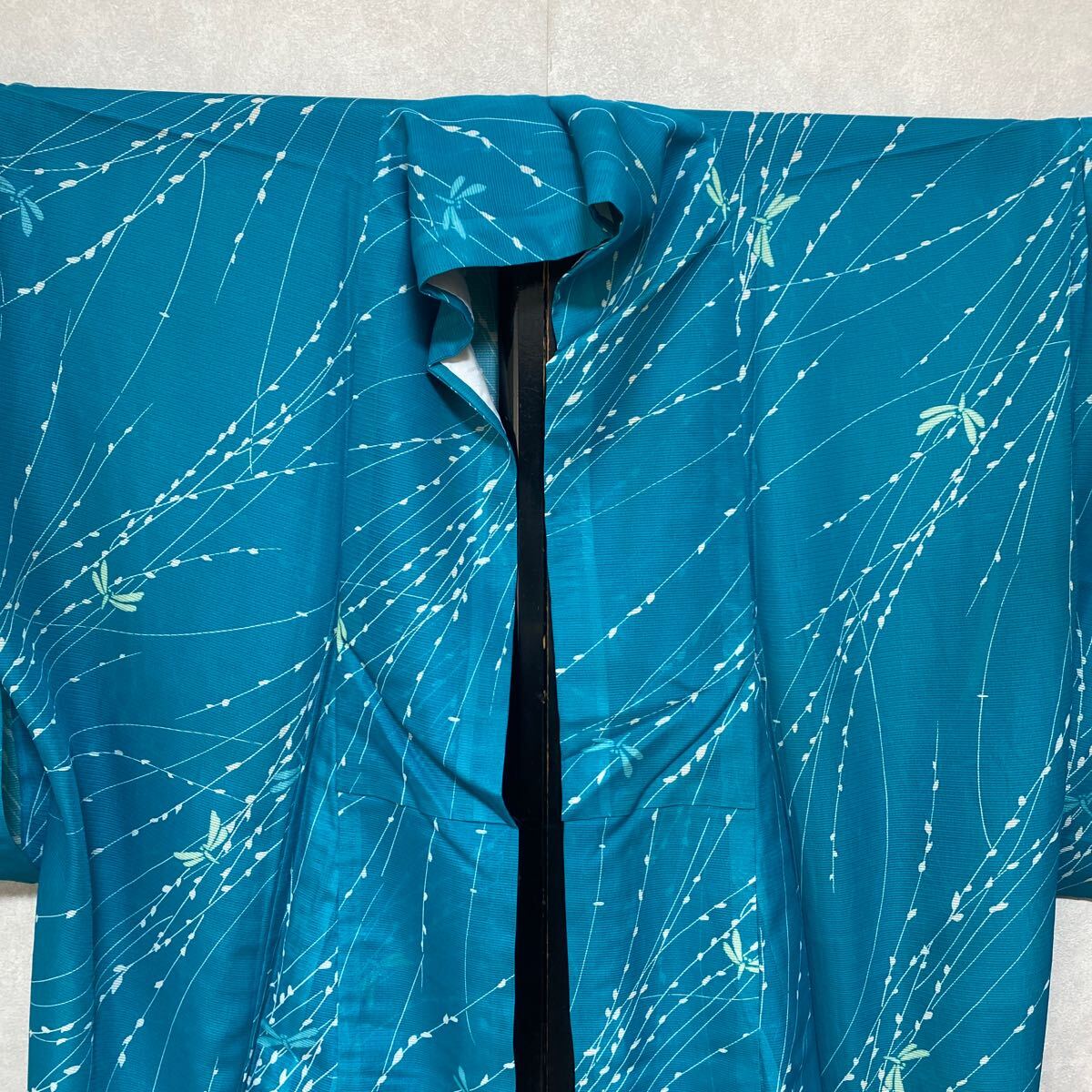 アンティーク 単衣 絽 紗 夏物 着物 エメラルドグリーン トンボ 昭和レトロ 大正ロマン モダン 和洋折衷コーデ リメイク き23-11w