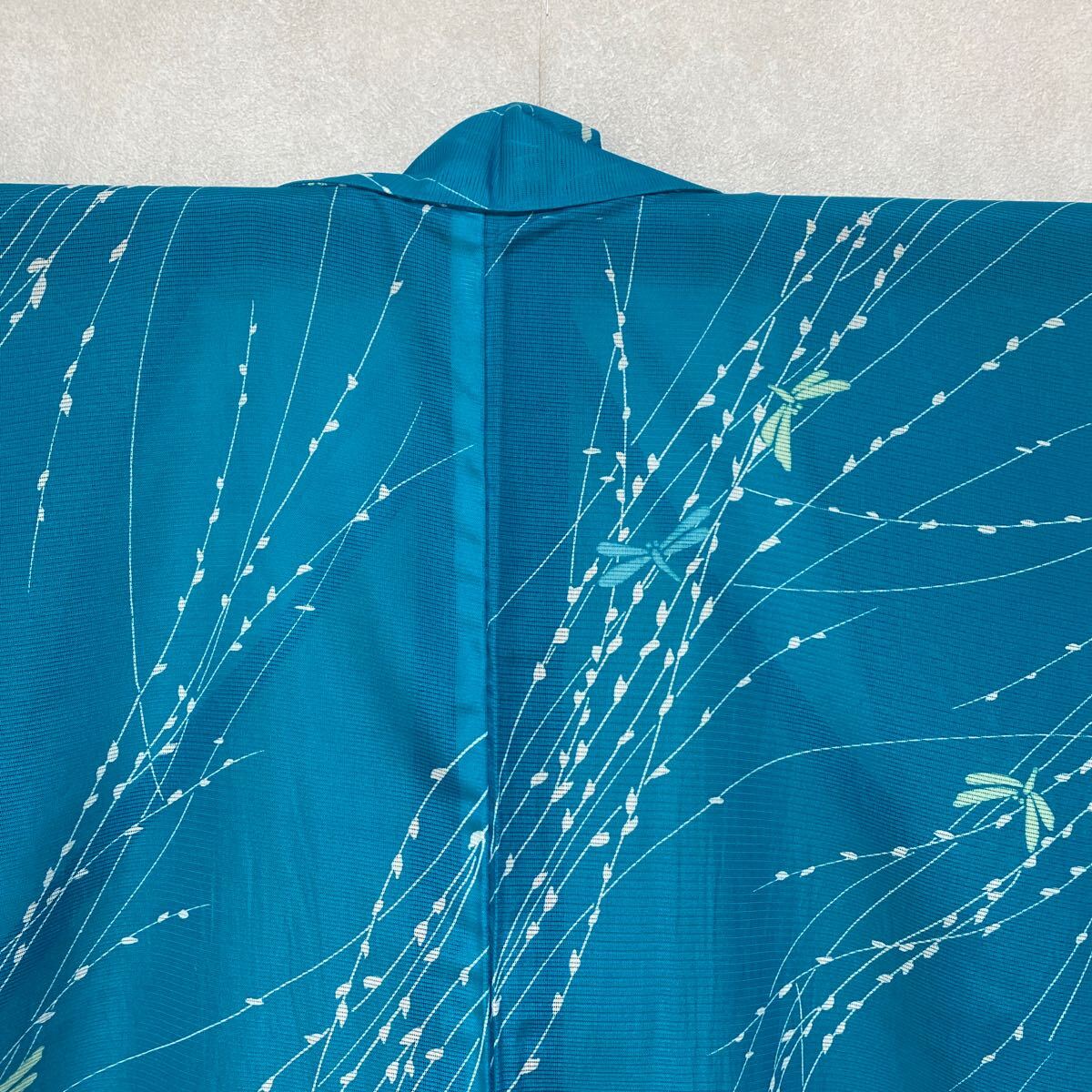 Product name: アンティーク 単衣 絽 紗 夏物 着物 エメラルドグリーン トンボ 昭和レトロ 大正ロマン モダン 和洋折衷コーデ リメイク き23-11w