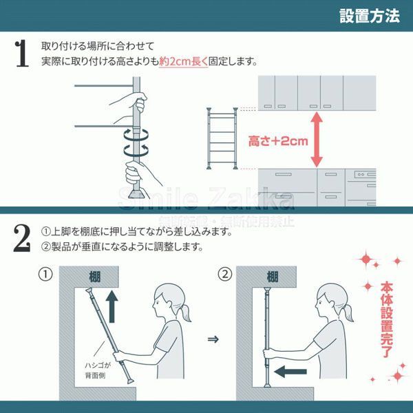 ・組み立て簡単な、ハシゴ型の突っ張りラックです。