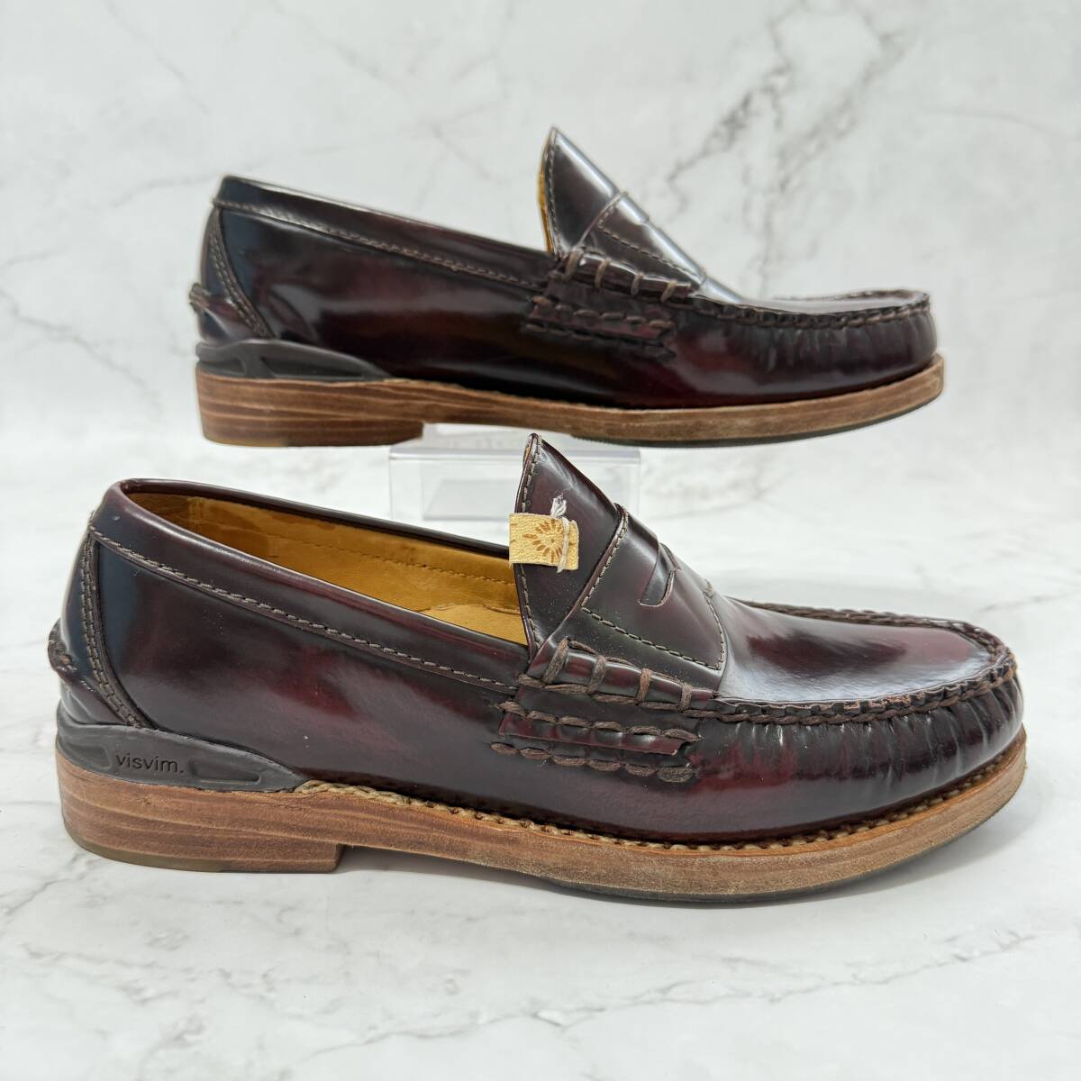 【美品】VISVIM ビズビムFABRO CG-FOLK BURGUNDY バーガンディ ウッドソール ローファー サイズ:8 ブラウン