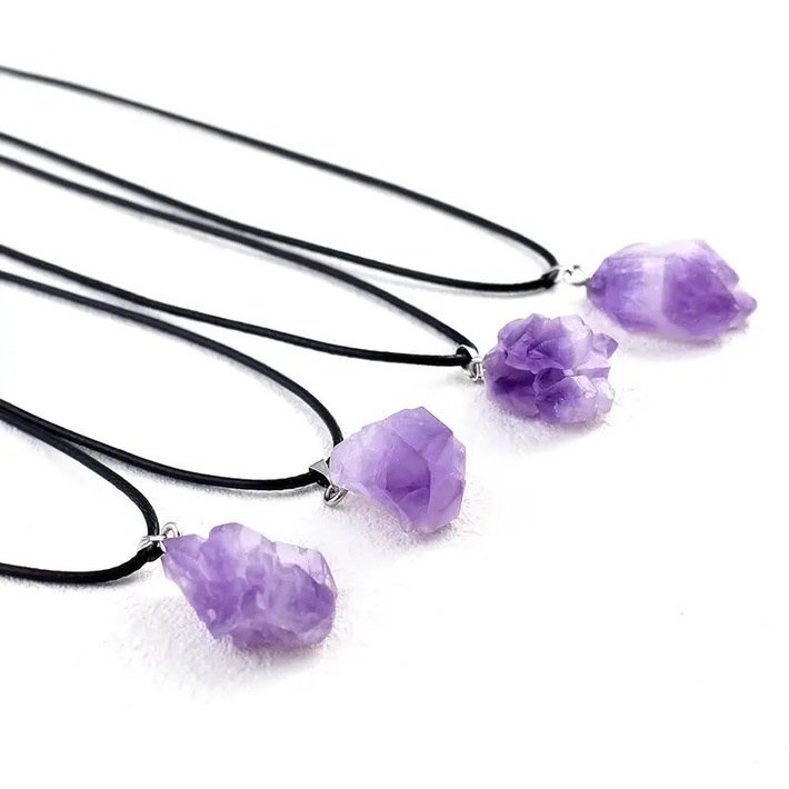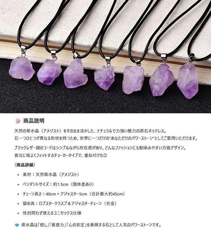 天然の紫水晶(アメジスト)をそのまま活かした、ナチュラルで力強い魅力の原石ネックレス。