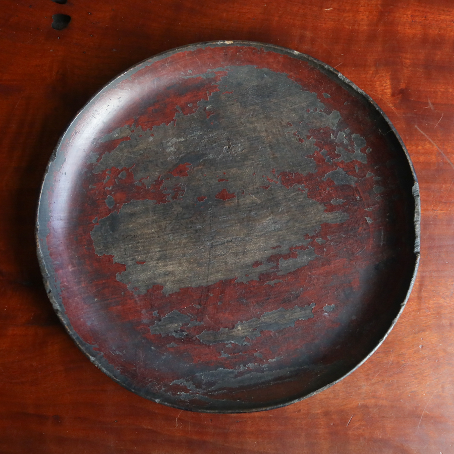 Product name: 時代 丸盆 木製 漆芸 検) 根来盆 煎茶盆 酒器盆 茶道具 茶器 木地盆 やつれ盆 枯盆 菓子盆 民芸 古民芸 江戸明治