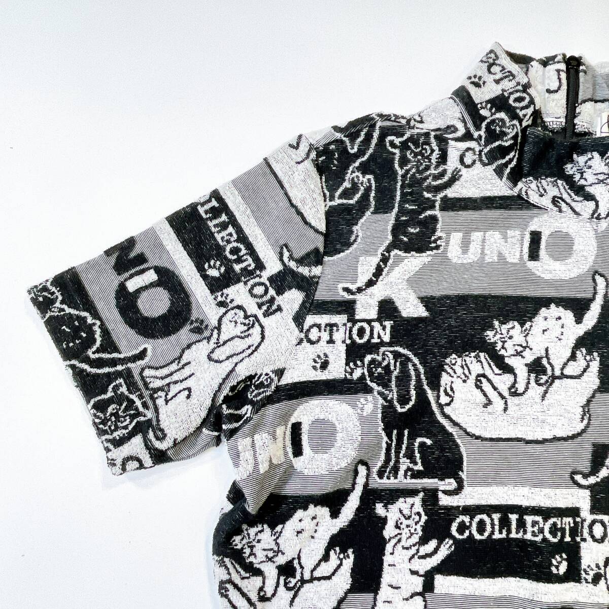Product name: KUNIO COLLECTION クニオコレクション ロングワンピース MEDIUM M 総柄 アニマル 犬 ハイネック モノトーンカラー☆1081y