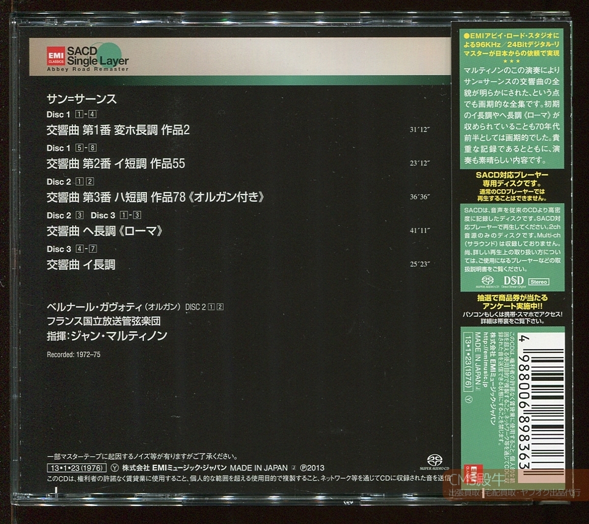 Product name: CIS2508-020>SACD■マルティノン&フランス国立放送管/サン=サーンス:交響曲全集 1972-75年録音(シングル・レイヤー)