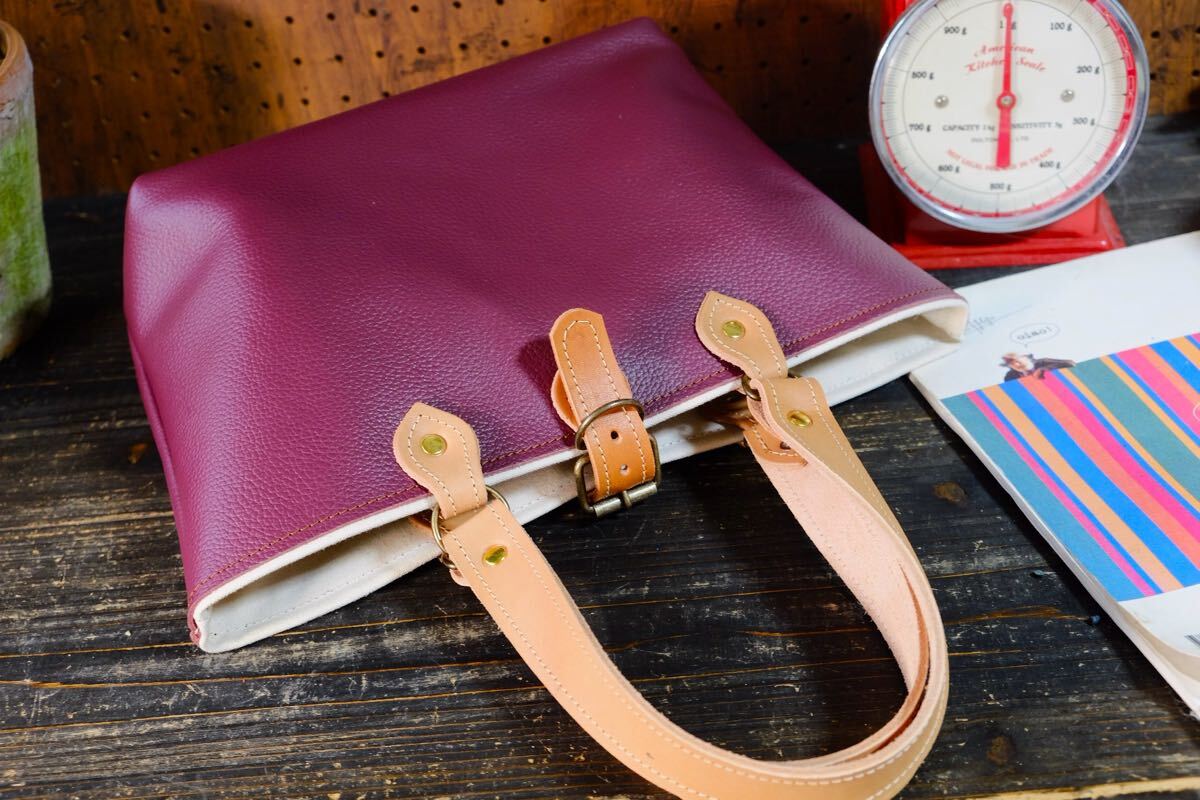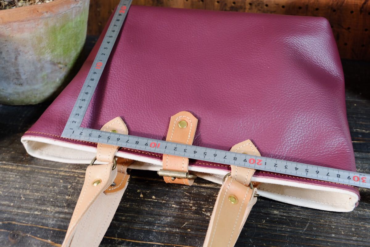◆国産ワインレッドシュリンク牛革とサドルレザートートバッグ 作家手作り★日本製帆布鞄一点物ハンドメイド