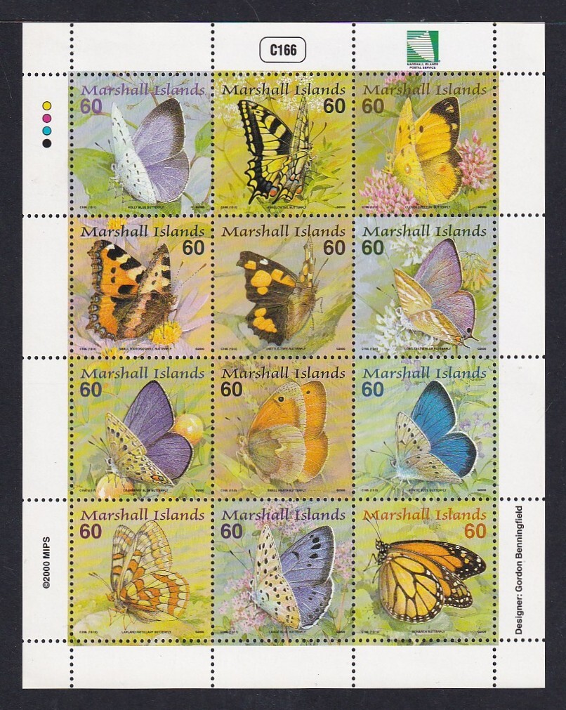5 マーシャル諸島【未使用】<「2000 SC#752 蝶」 組合せ小型シート(12種連刷) >