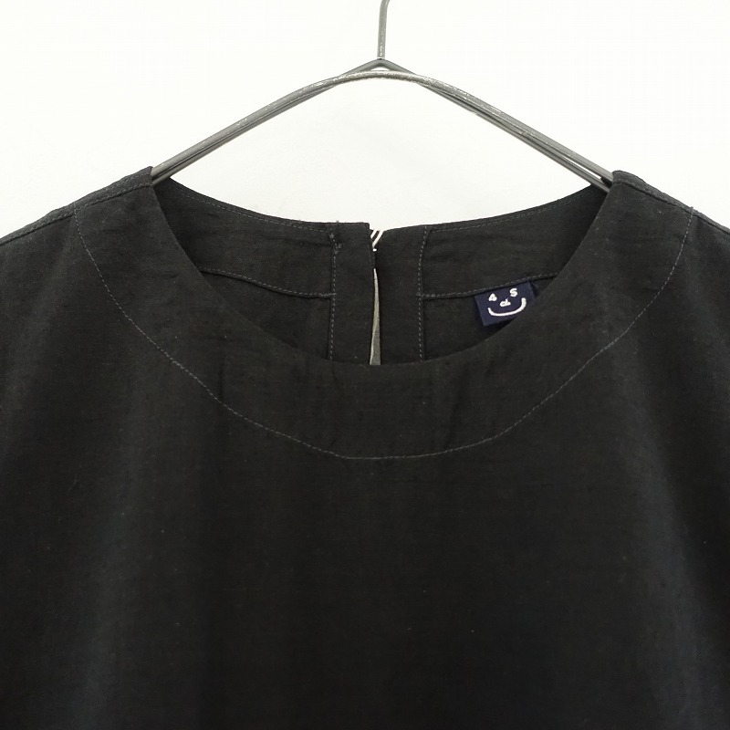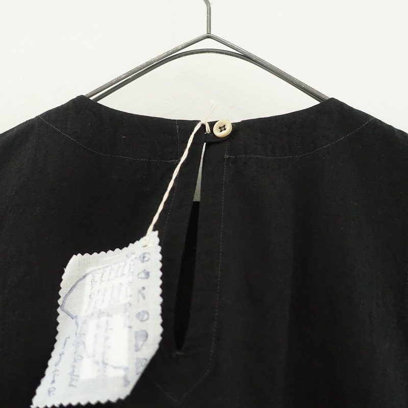 2025年SSコレクションR45RPMのインドカディオックスのノースリーブぽよんドレスです。カラーは褪せたようなブラックです。バック襟元のボタン開閉のプルオーバータイプで、両サイドにシームポケットが付いております。バック右腰に「R」のブランドロゴ刺繍があしらわれており、定価(メーカー希望小売価格)52,800円 税込みの商品です。