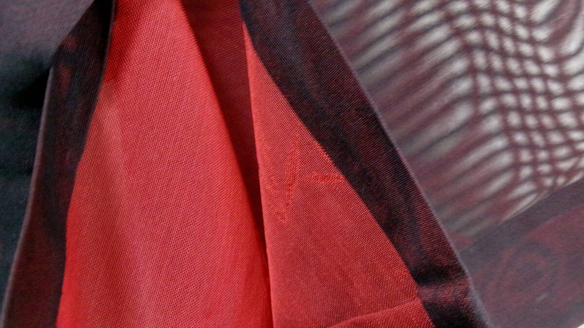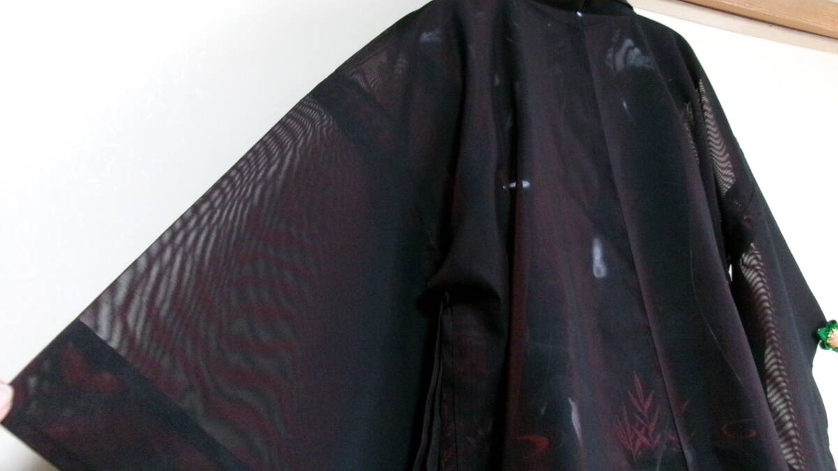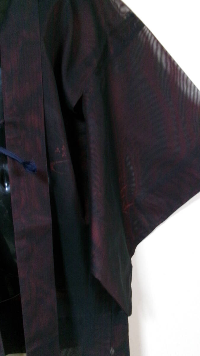 Product name: 121【夏】美品※経年保管品※紗※黒色裏は暗緋渦模様※交織※単衣※羽織 丈77 裄65
