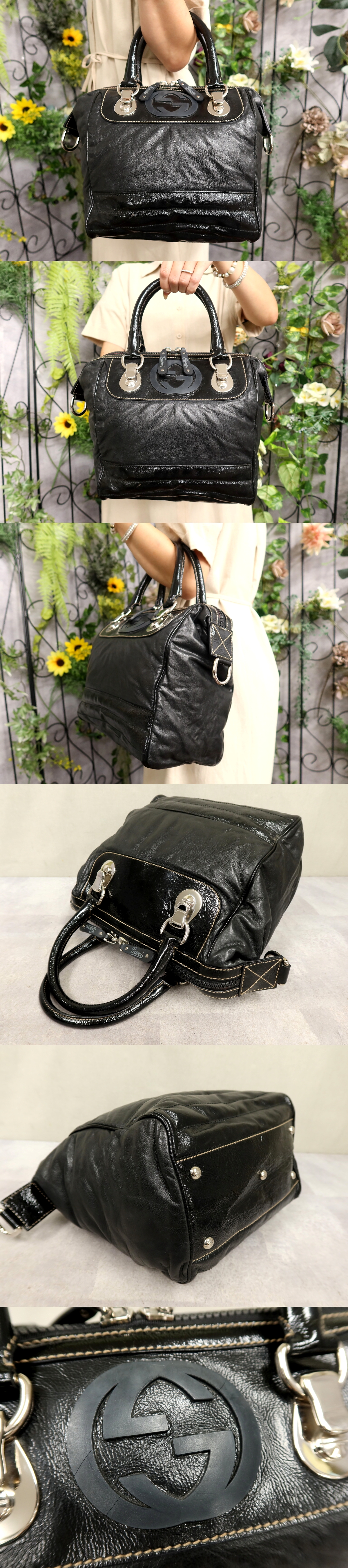 Product name: 超美品●GUCCI グッチ●インターロッキング●エナメル パテント カーフ レザー 本革●ハンド バッグ●黒●SV金具●イタリア製●B5●Js59346
