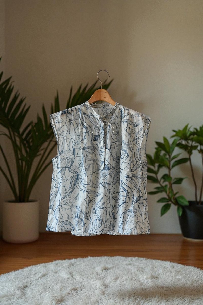 Product name: ★送料無料!トゥモローランド/collection *コットンシルク リーブプリント ヨークギャザーブラウス* 古着のgplus広島 2508r1