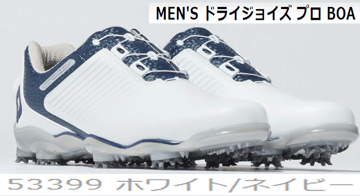 新品■フットジョイ■ドライジョイズ プロ ボア スパイク■53399■ホワイト/ネイビー■27.5CM■M=EE■日本人ゴルファーの足を考え抜いた