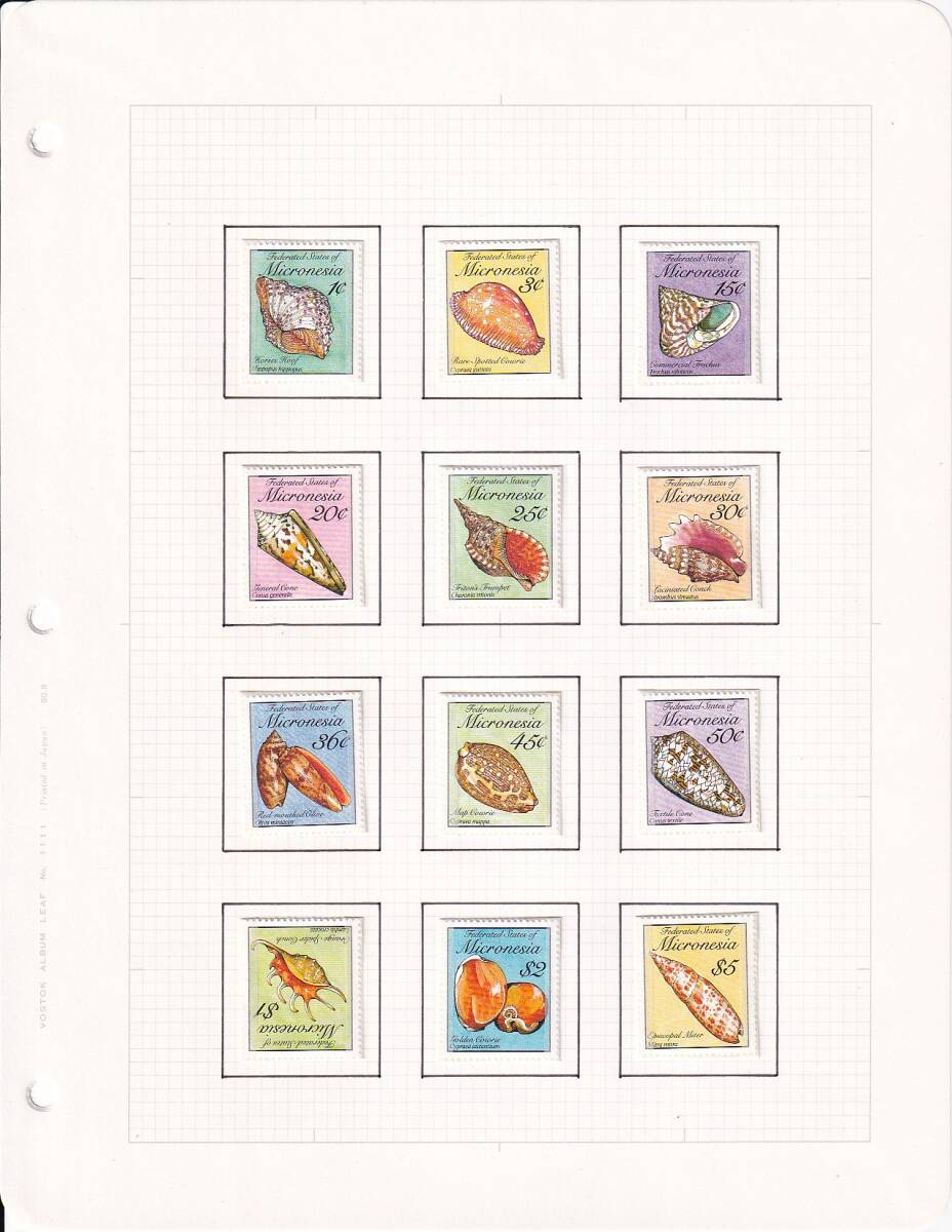 24 ミクロネシア【未使用】<「1989 SC#83-102 貝殻」 12種完 on リーフ >