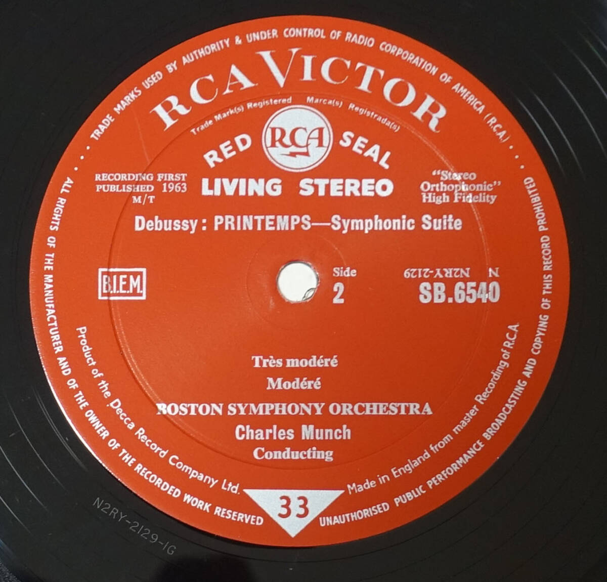 英RCA SB 6540 ドビュッシー : 牧神の午後 シャルル・ミュンシュ