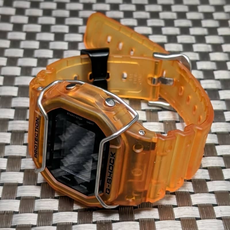 G-SHOCK DW-5600BB (ハーフスケルトンオレンジ) 電池新品 + ショックバンパー・メタル遊環 - 送料 230円~