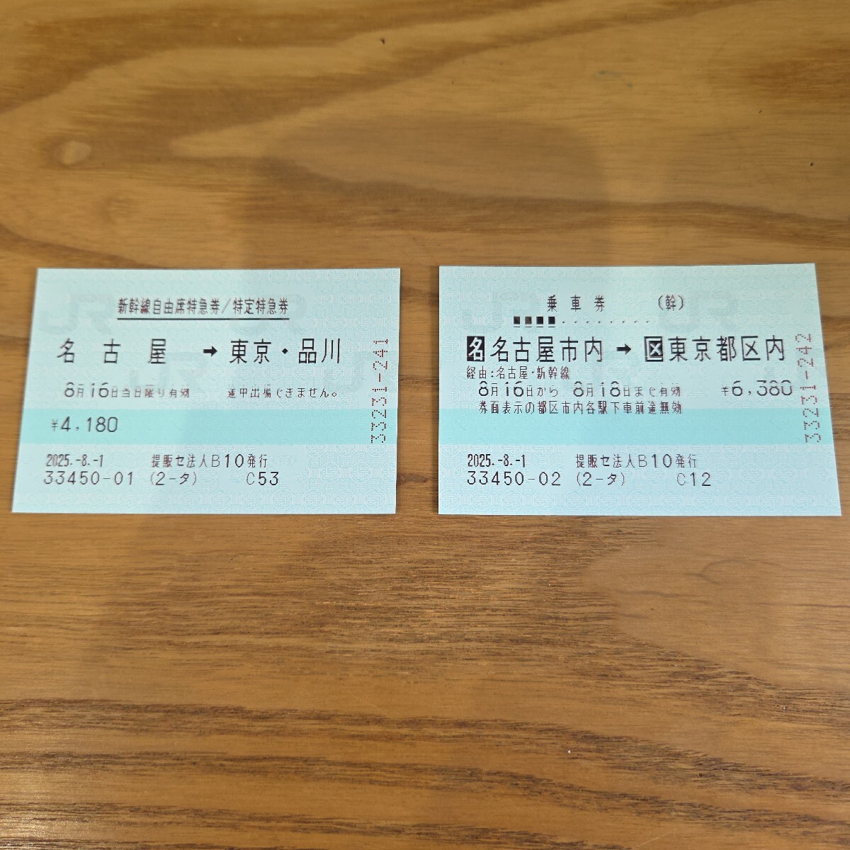 Product name: 新幹線チケット2025-08-16 名古屋東京・ひかり 640号(08:43発 - 10:42着)・席種 : 自由