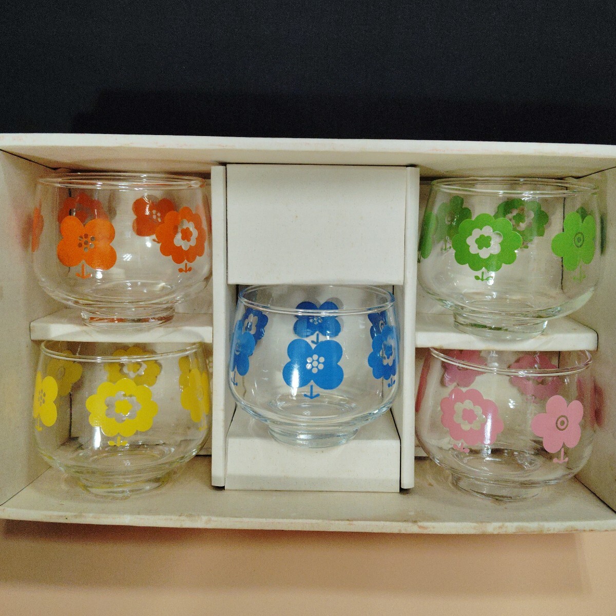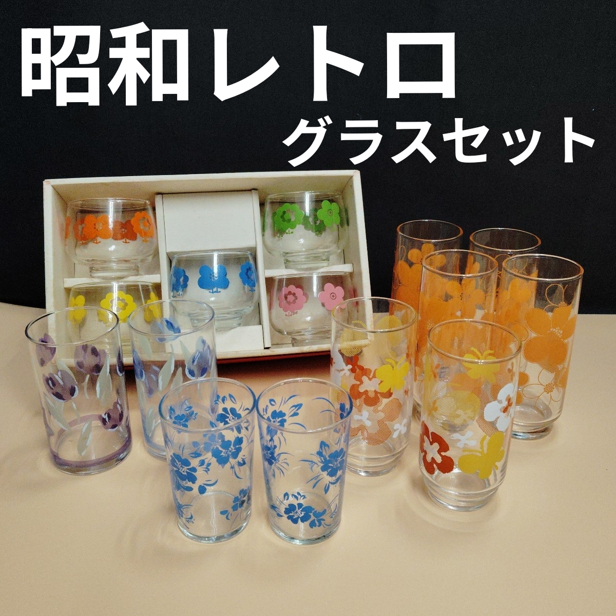 昭和レトロ グラス ガラスコップ 花柄 コップ 食器 当時物 アデリア タンブラー レトロポップ アンティーク ヴィンテージ コレクション