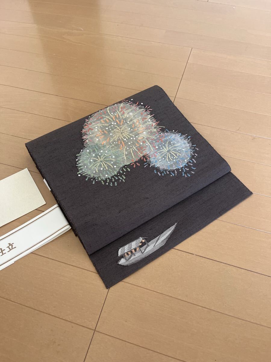 商品名 : 花火柄に一目惚れして購入したものの使う機会がございません。色とりどりの花火柄が織られておりとても素敵で出品するのを迷ったくらいです。