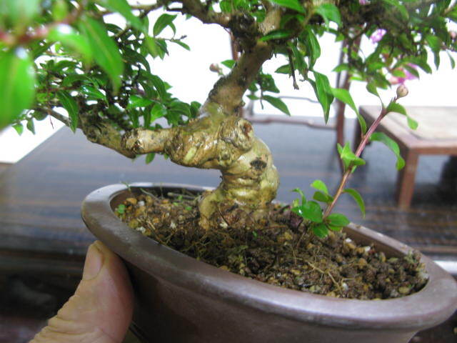 ★姫百日紅の小品盆栽です、太りにくい姫性の百日紅でこれだけの太さはかなりの年数が経っています、展示会も飾れるでしょう。