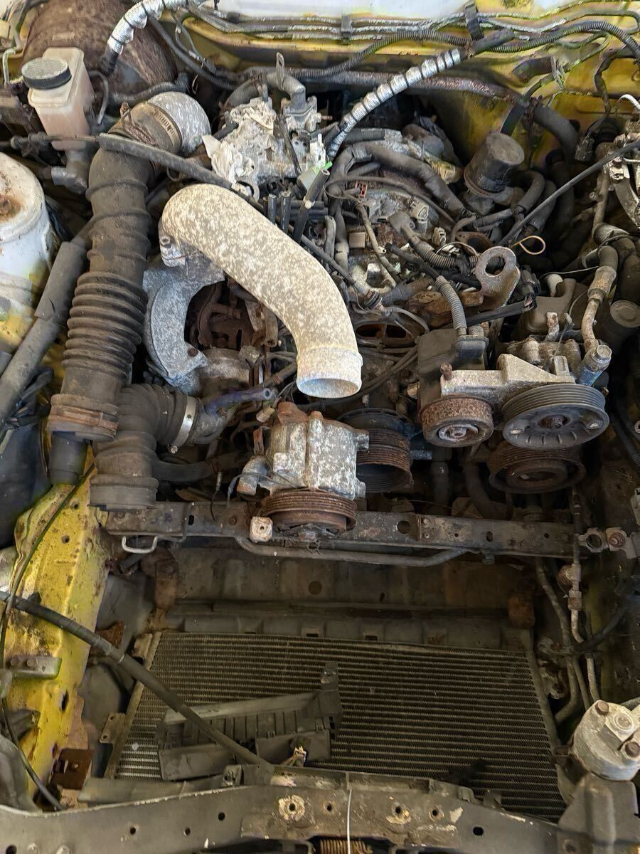 写真にある通り屋根に穴、錆、腐食やトランク等に錆穴がありサイドシルにはジャッキアップの際の少し曲がった凹みと錆が見られます、見た限りですがアーム、フレーム足回り等には酷い錆は無く問題はないと思われます。一様修復歴なしとの事です。追加ですが助手席フロアに穴が見られ、カットボディを購入しました。