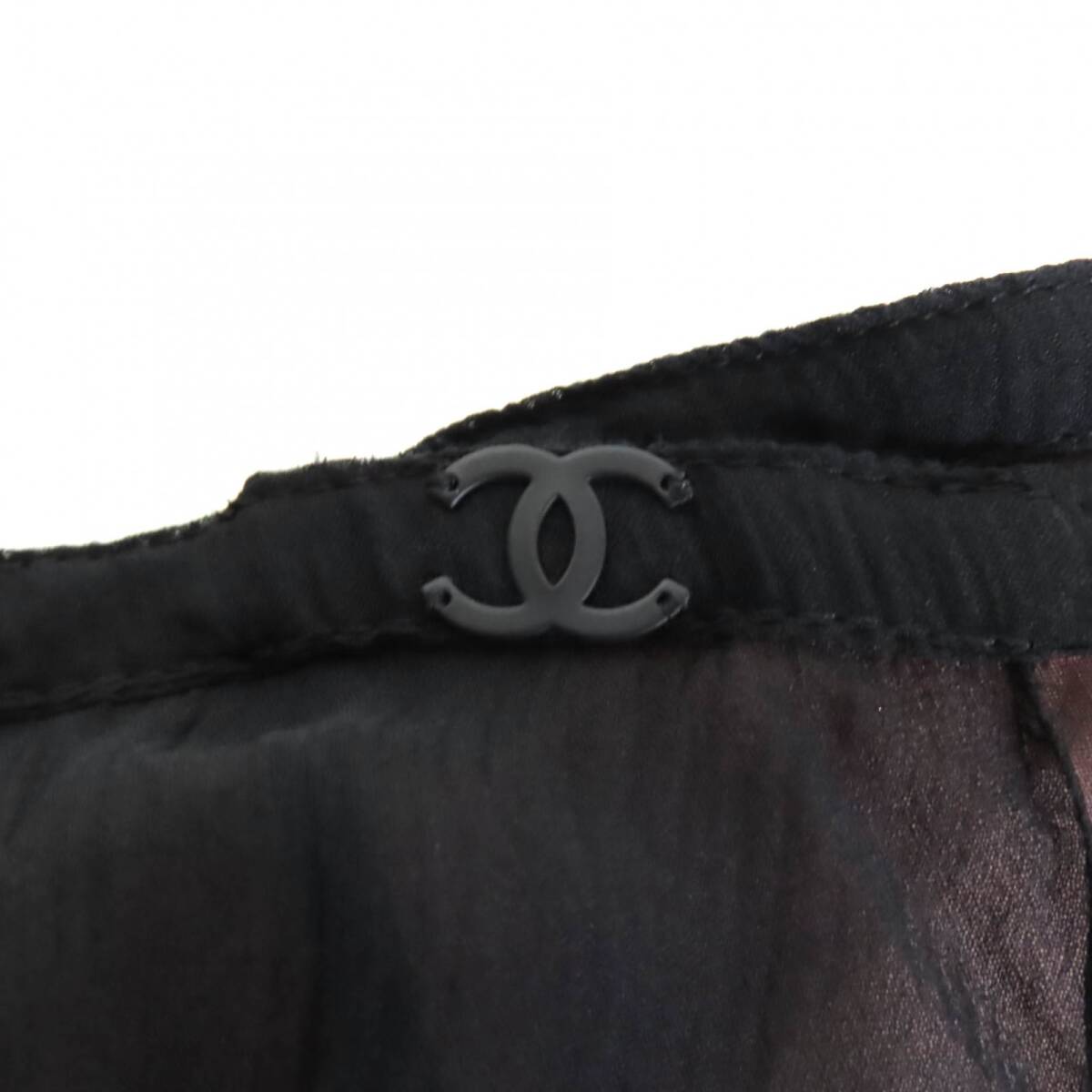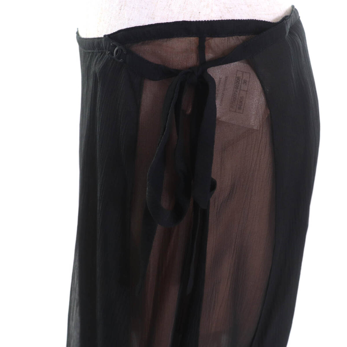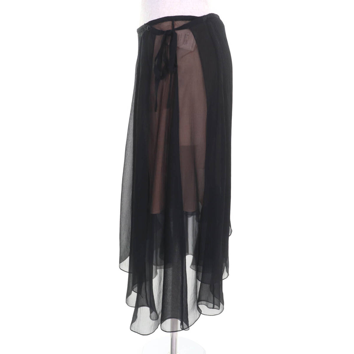 Product name: 極美品★CHANEL シャネル P70007 シルク100% ココマーク金具付 サイドリボン 膝丈 シフォンスカート ブラック 38 フランス製 正規品