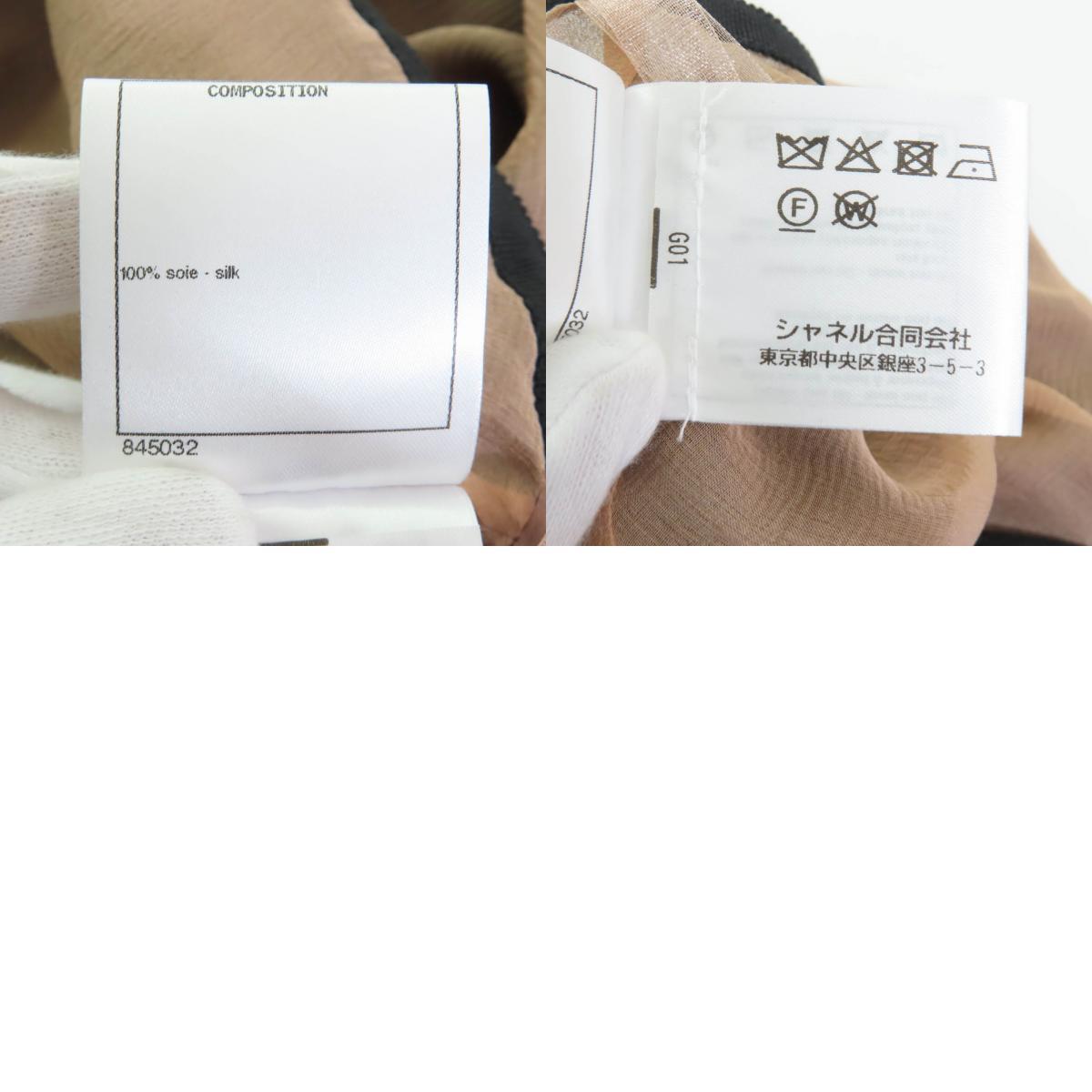 極美品★CHANEL シャネル P70007 シルク100% ココマーク金具付 サイドリボン 膝丈 シフォンスカート ブラック 38 フランス製 正規品