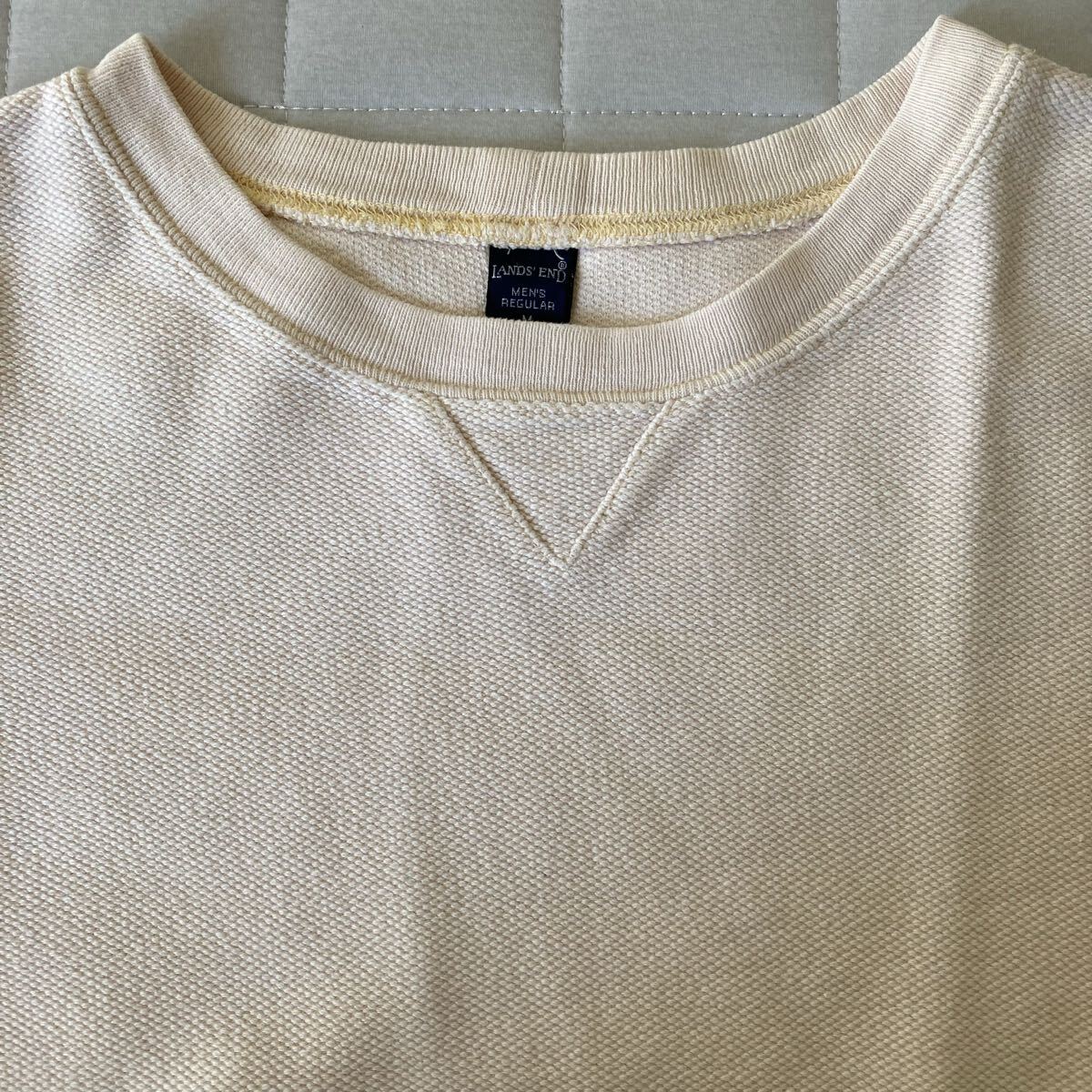 (刺し子織)90s LANDS' END スウェットシャツ 表記Mサイズ サーモンピンク USA製 ビンテージ ランズエンド 80s 前V