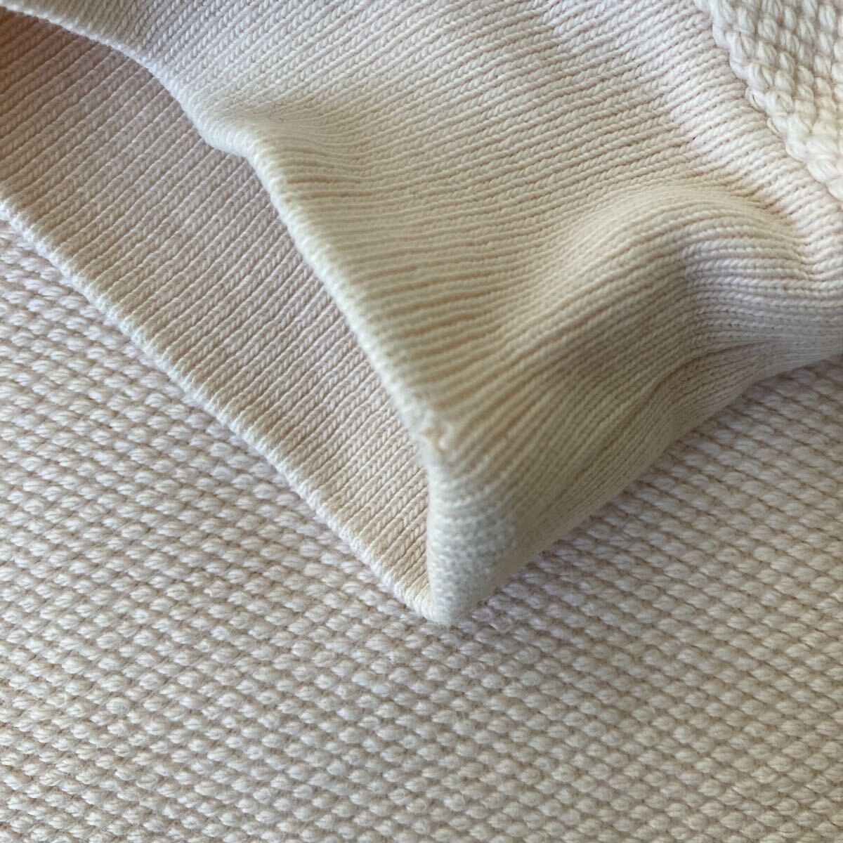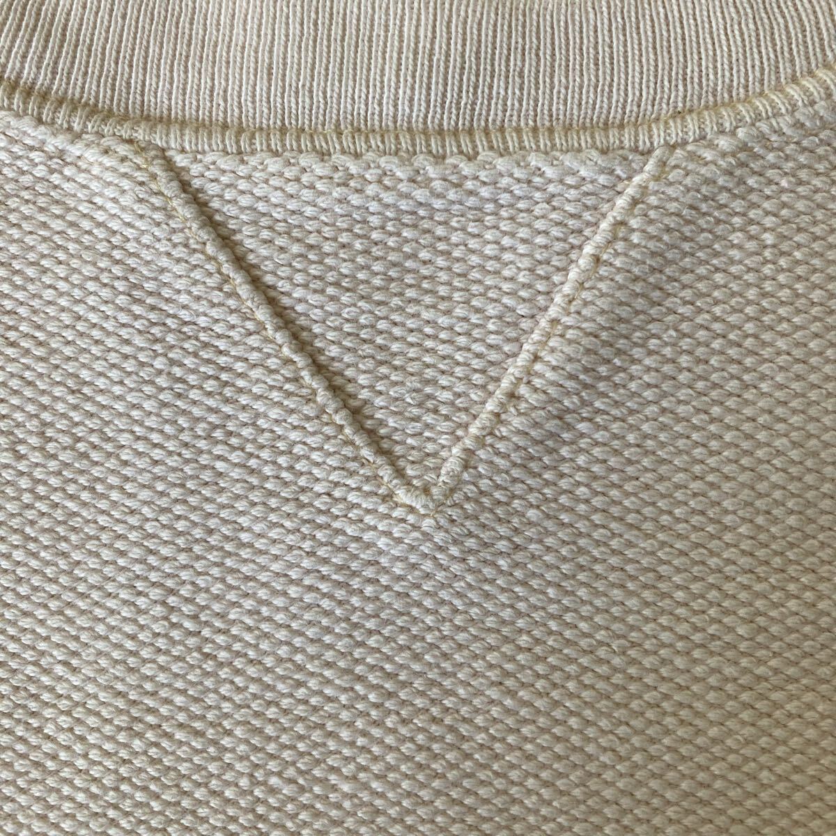 刺し子織(柔道着ほど厚くはありません)のようなしっかりとした生地、前V、コットン100%、USA製。