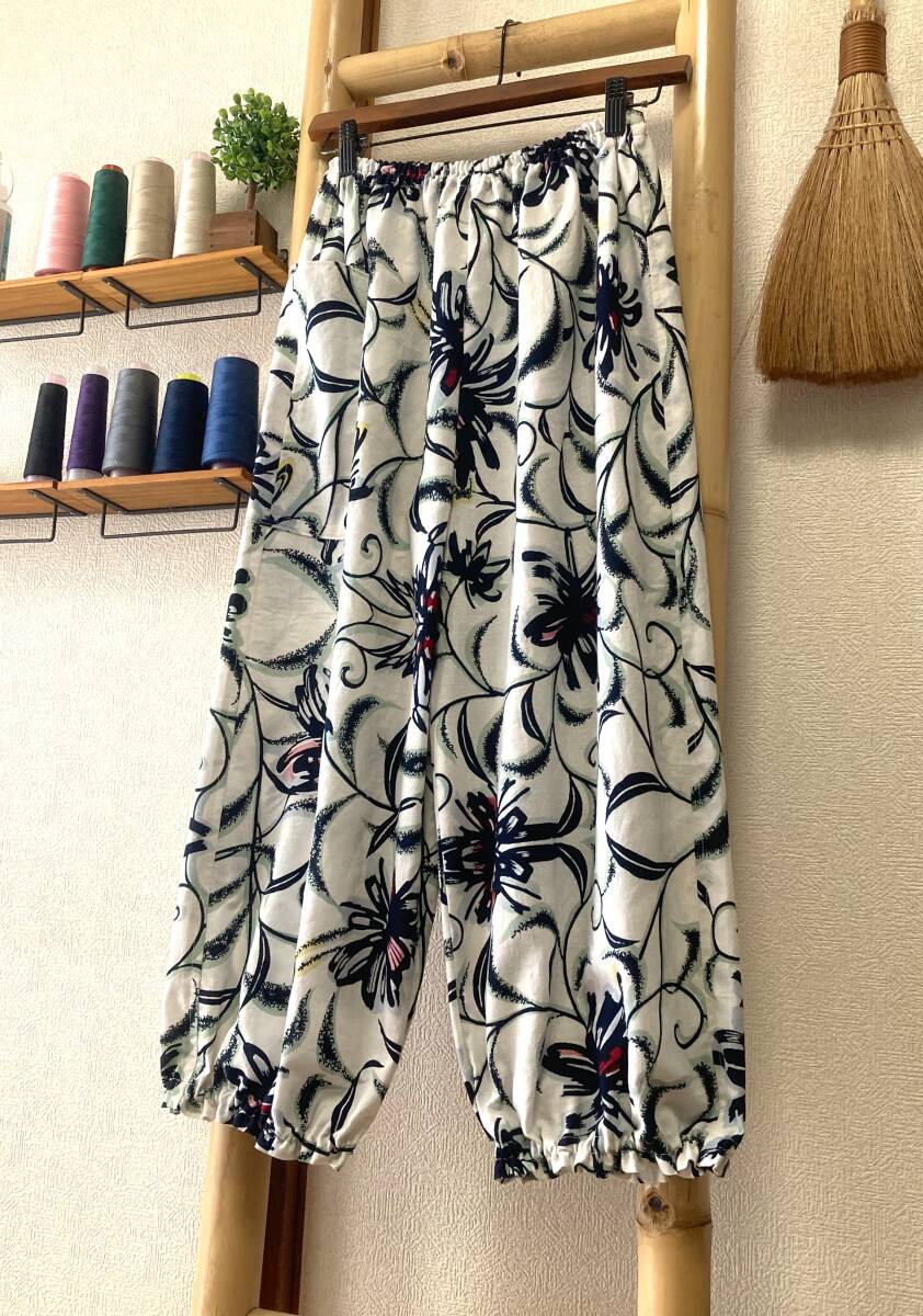Product name: 鎌倉まるか堂 浴衣リメイク 涼み 黒花蔓葉のもんぺ風 ●綿 ●ゆったりまるっこいシルエット ●M~L●裾ふわパンツ●洗濯OK