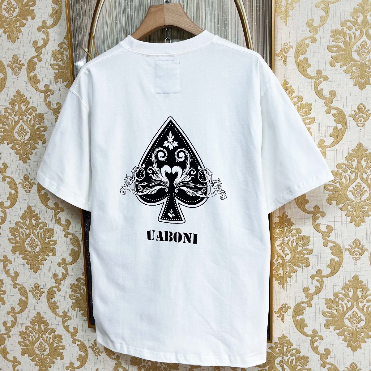 Product name: 高級EU製&定価2万◆UABONI*Paris*半袖Tシャツ*フランス*パリ発◆綿100% 快適 通気 ロゴ スペード柄 プルオーバー カジュアル 夏服 L/48