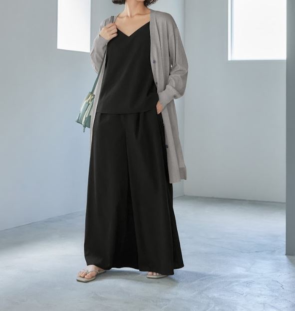 ブラックおよびエクリュは同じ生地のキャミソール型ブラウスもご用意があり、セットアップとして着用することができます。