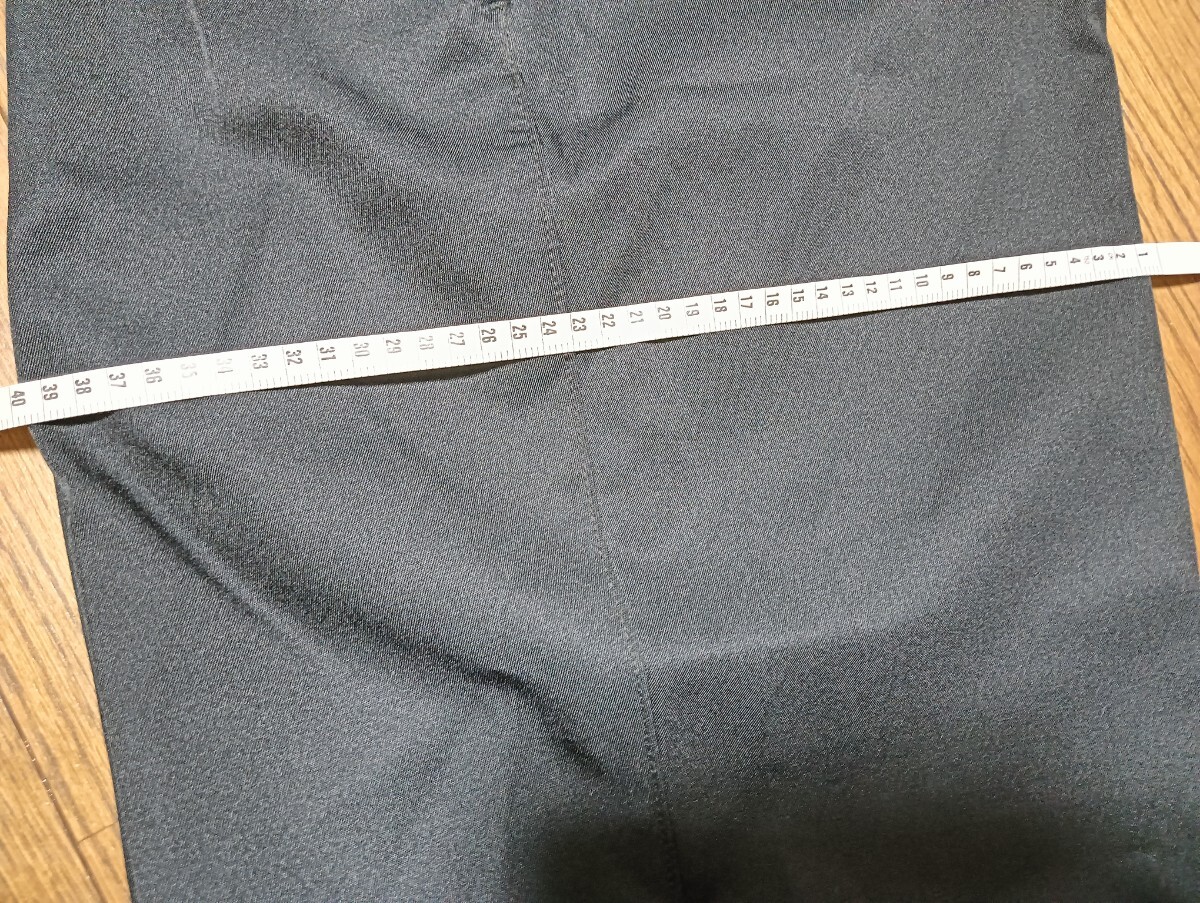 未使用ですが素人保管品で購入時の紙タグ等は取り外してあります。ロングタイプと思いますが採寸地を参考にしてください。サイズLウエスト平置き43.5股上31股下71裾幅18cm素材は写真でご確認ください。色:黒