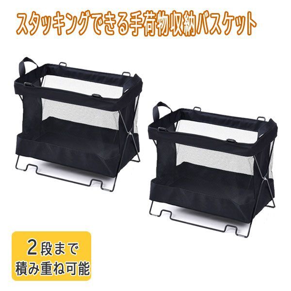 (0123)スタッキングできる手荷物収納バスケット S ブラック HTB-2S(BK) 2点